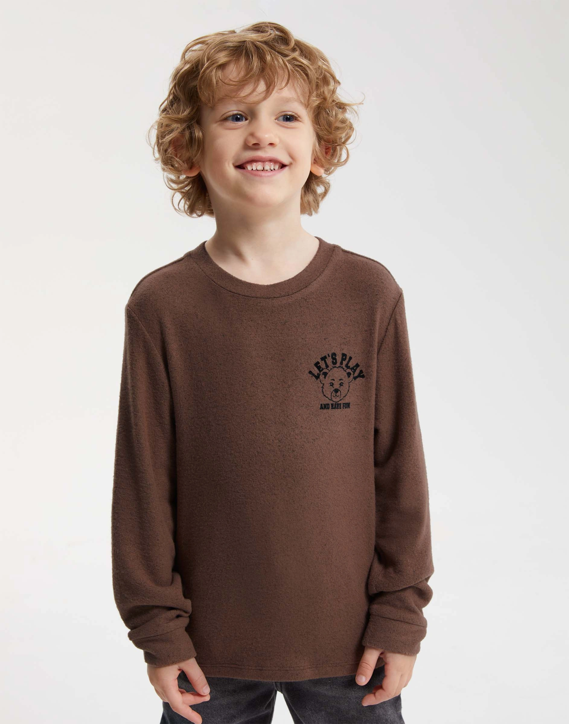 Коричневый лонгслив с флок-принтом для мальчика Bkt017011-3