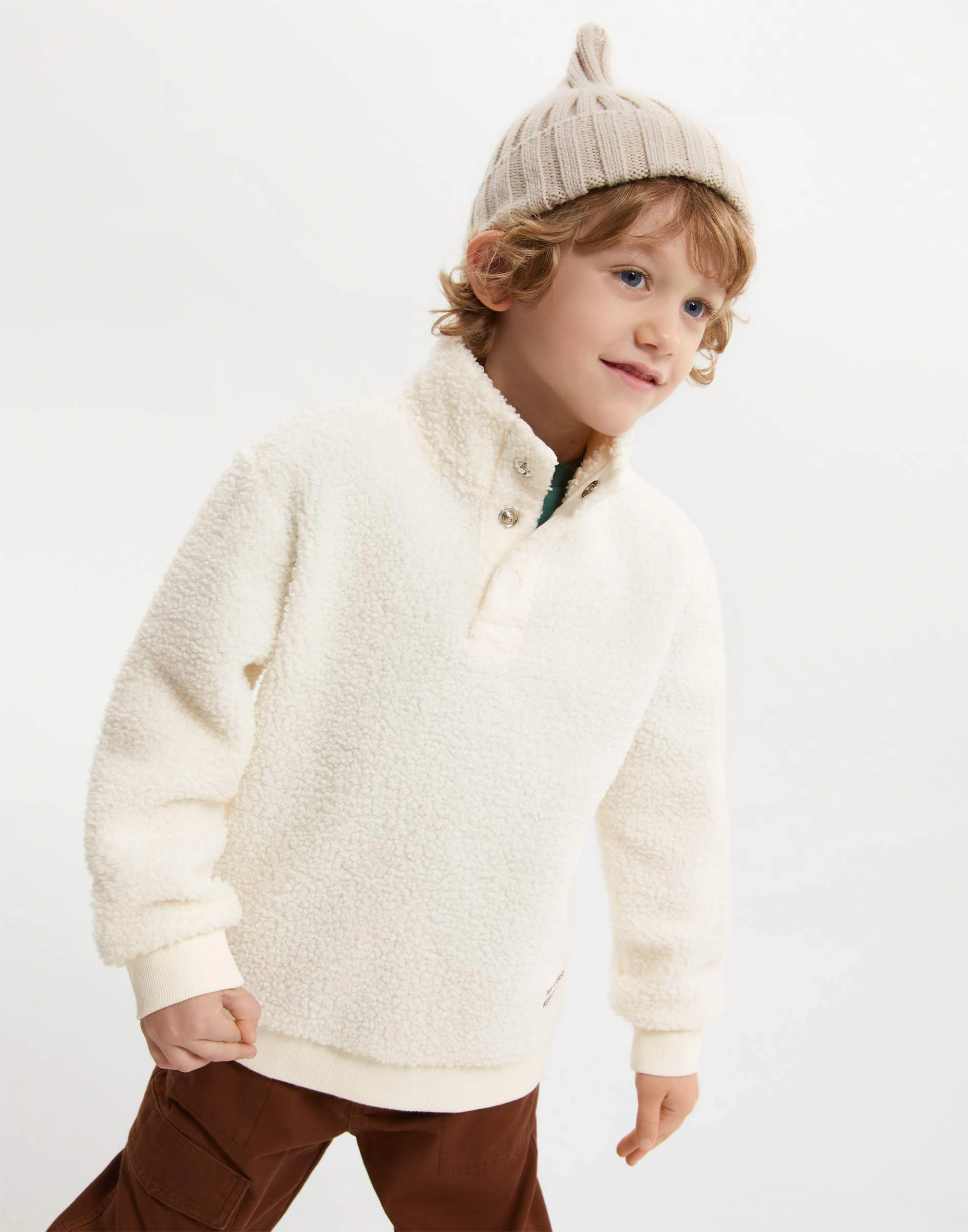 Молочный свитшот из шерпы с воротником для мальчика Bfu000015-1