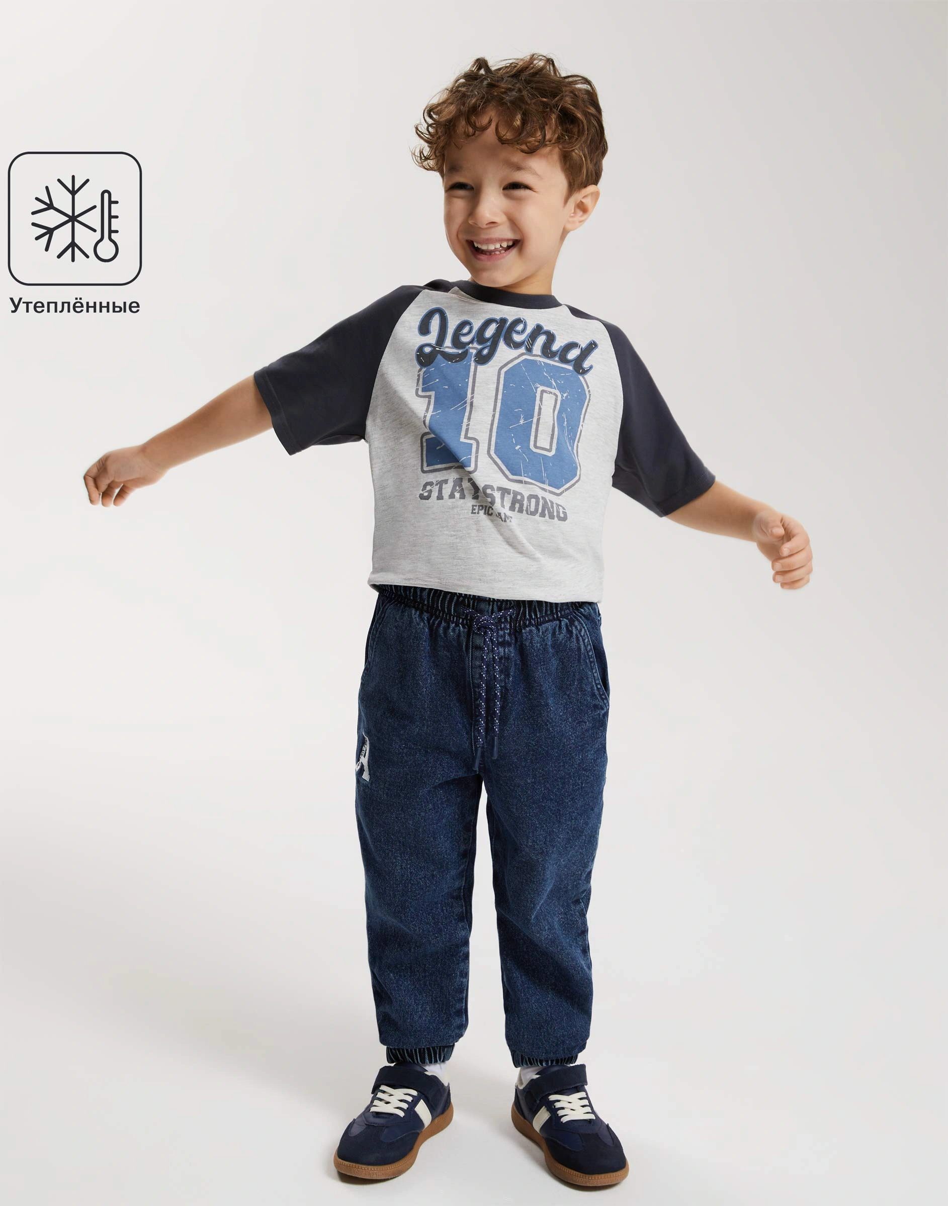 Утеплённые джинсы Jogger с вышивкой для мальчика Bwb002015-1