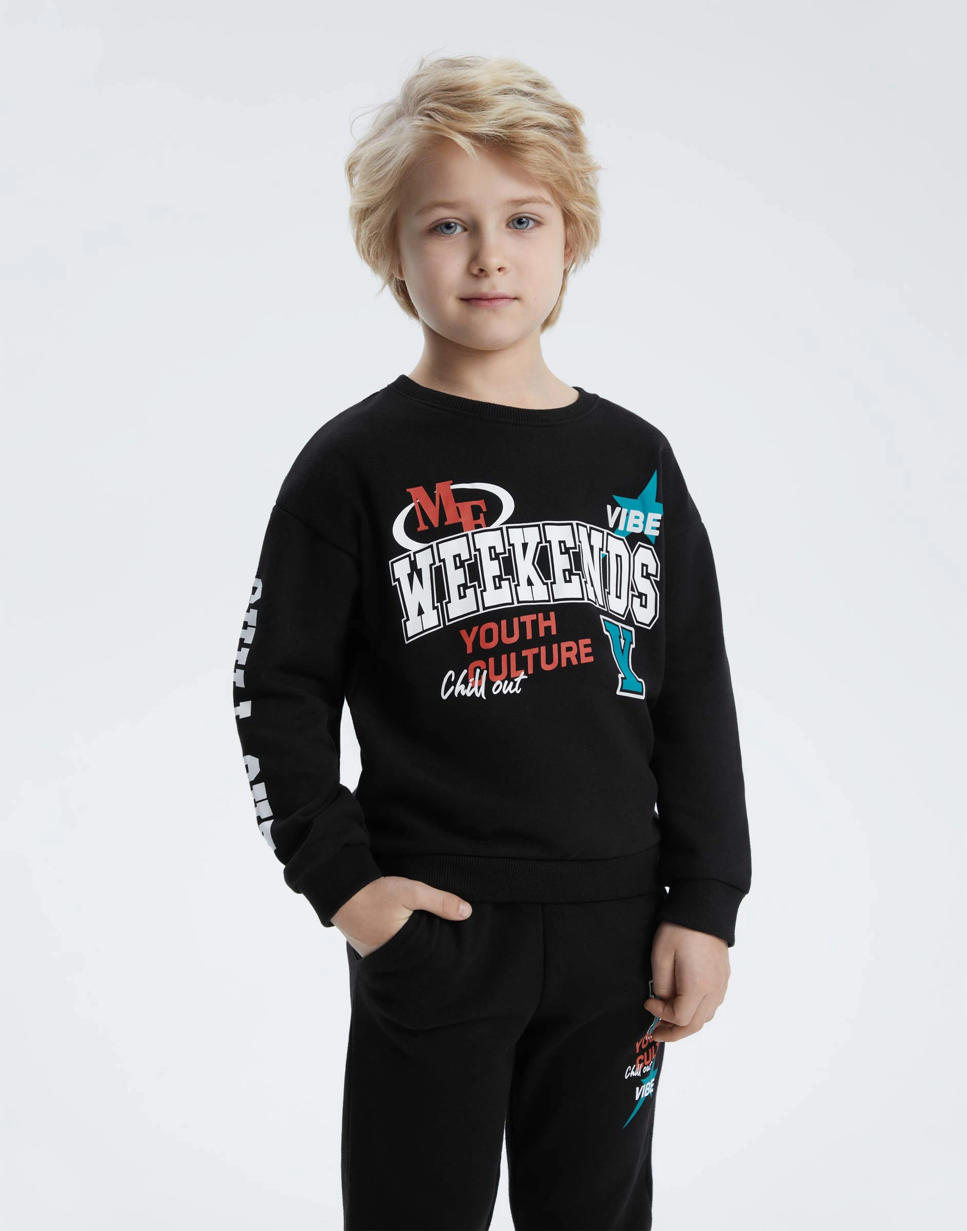 Чёрный свитшот oversize с принтом для мальчика Bac013491-1