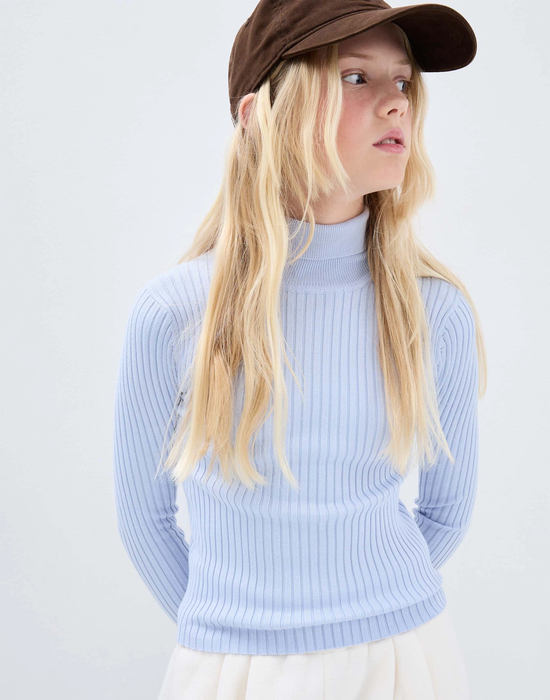 Голубая водолазка в рубчик с воротником гольф Gsw008121-2