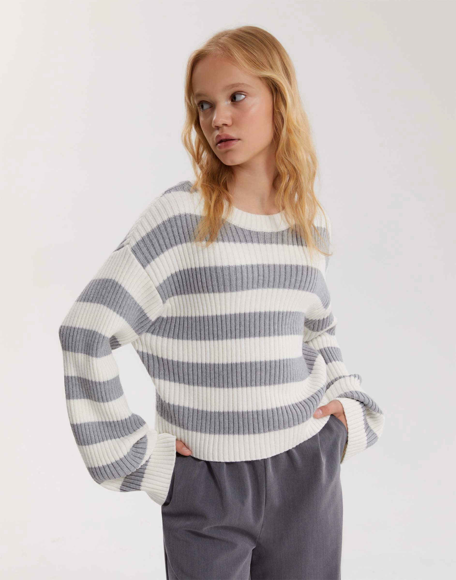 Свободный полосатый джемпер в рубчик Gsw008079-1