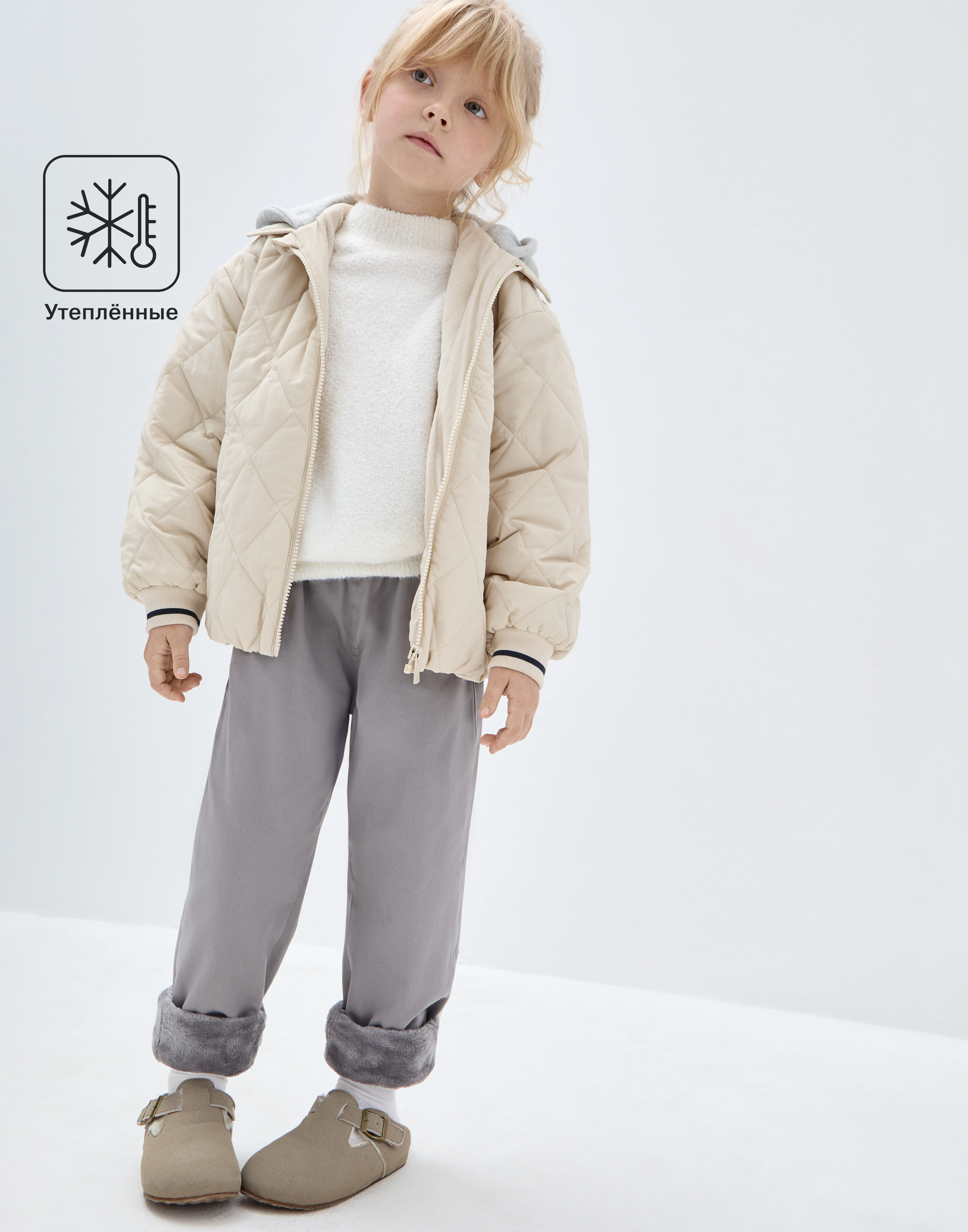 Серые утеплённые брюки Straight на резинке для девочки Gwb001499-2