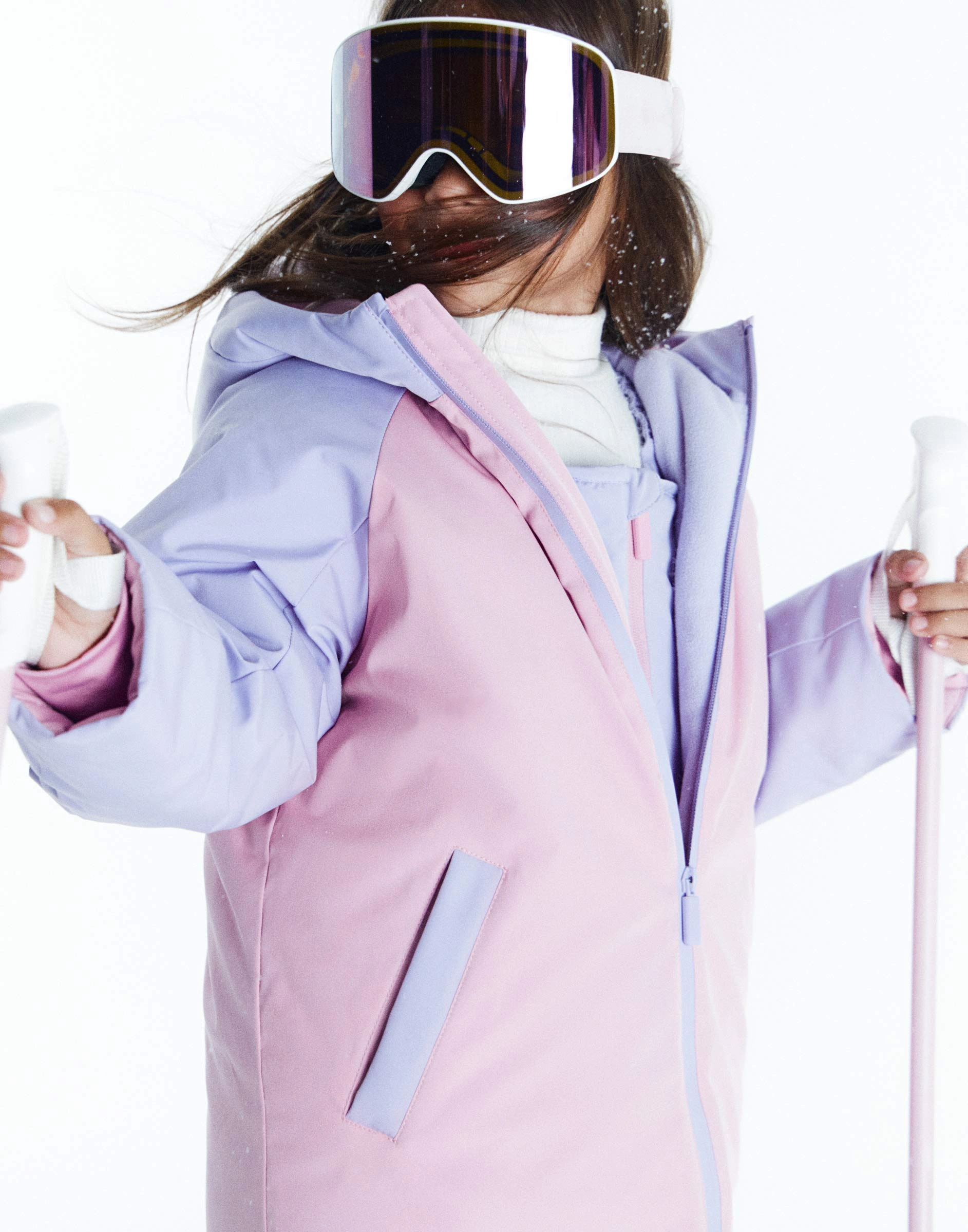 Сиреневая утеплённая куртка oversize со светоотражающим принтом для девочки Gow004590-1