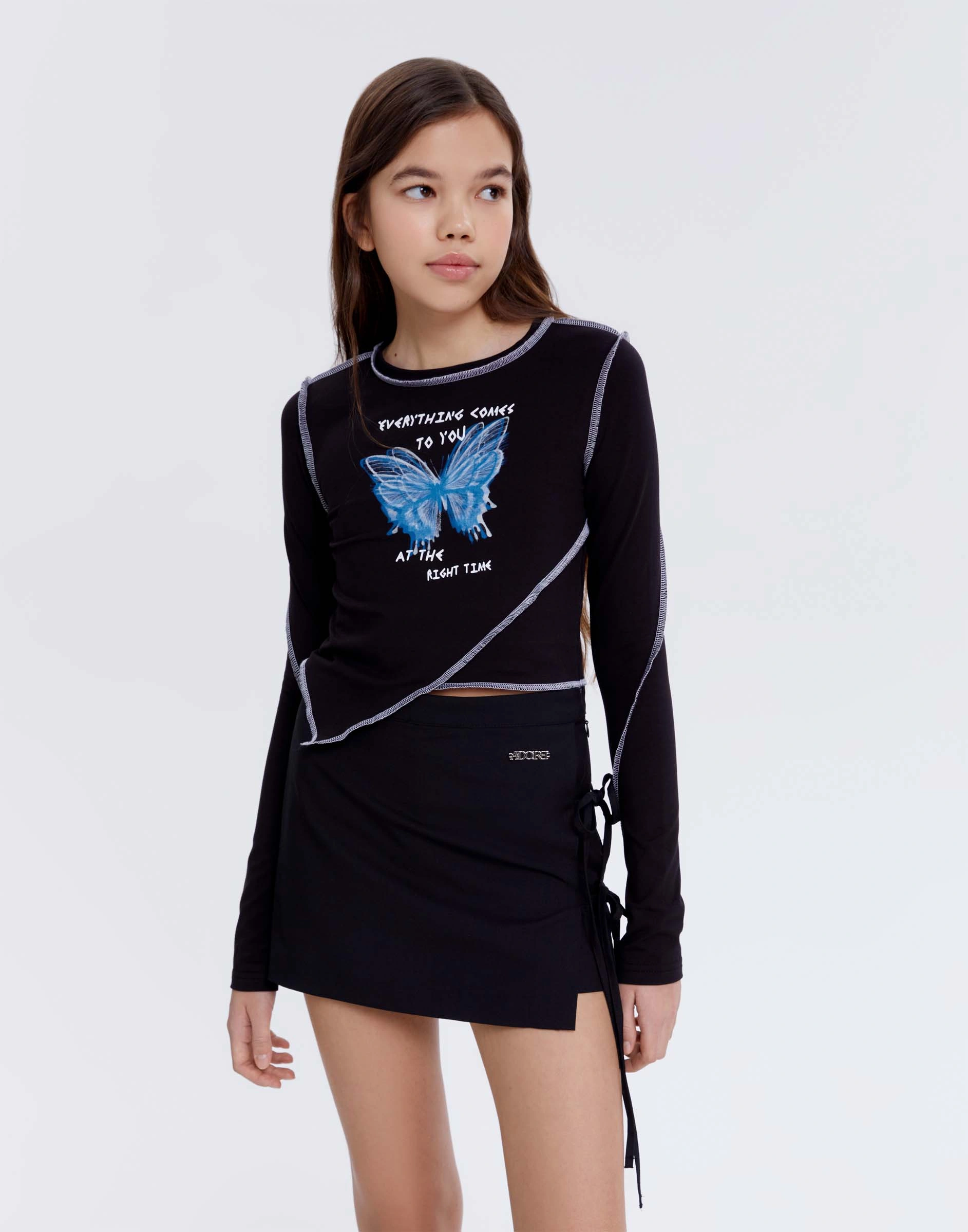 Чёрный асимметричный лонгслив с принтом Gkt025728-2