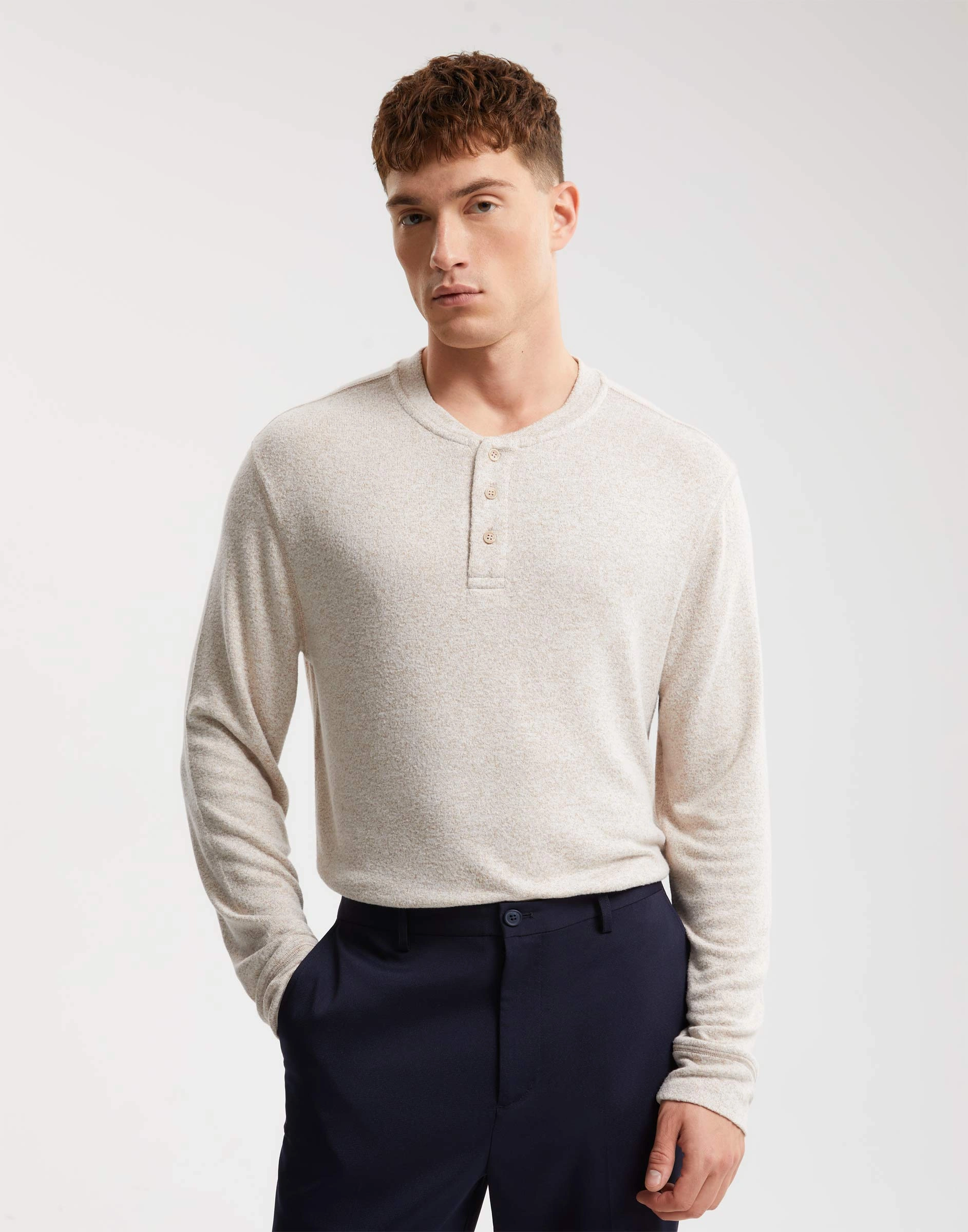 Светло-бежевый лонгслив с воротником хенли Bkt017199-2