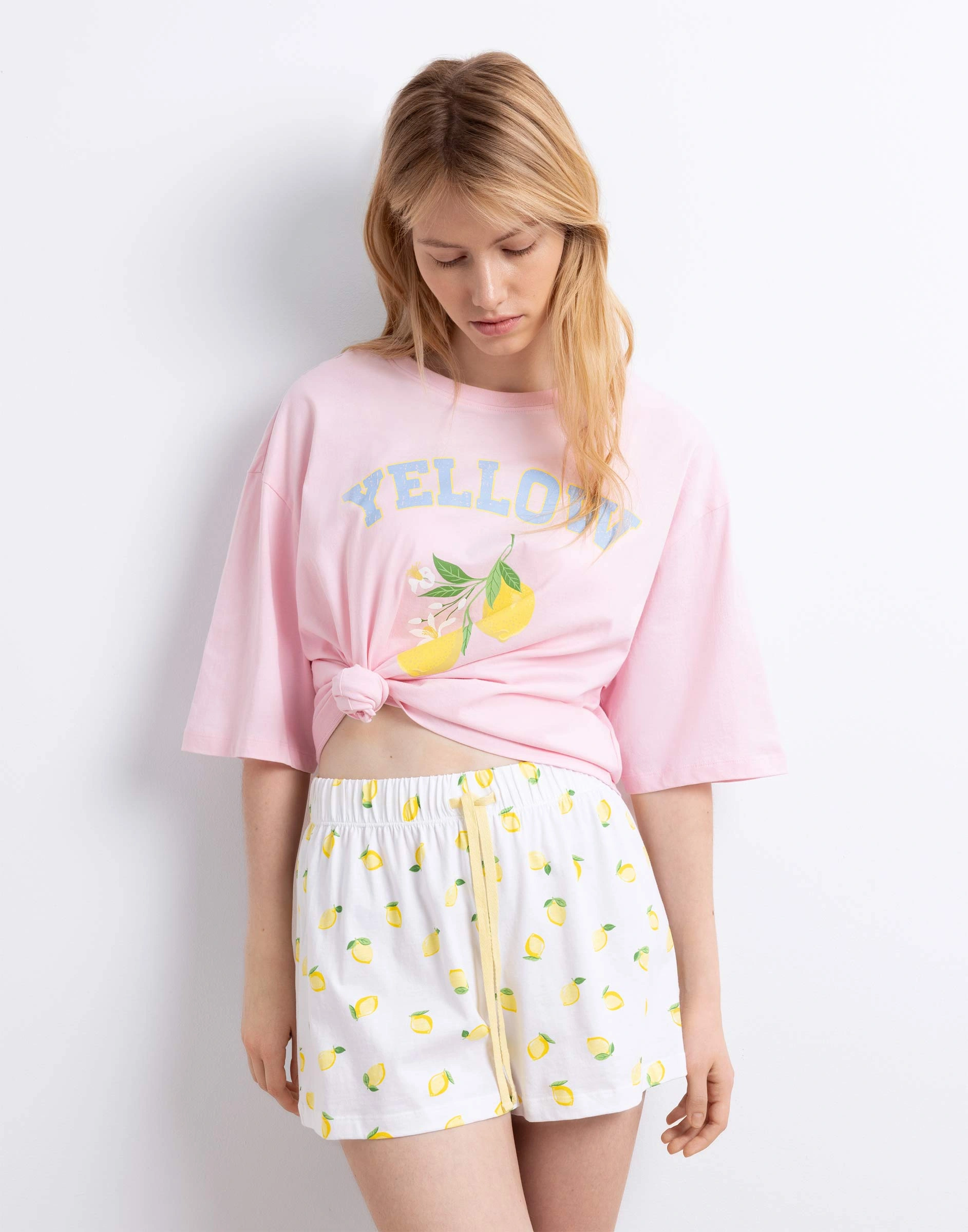 Белые пижамные шорты с принтом Gsl002708-1