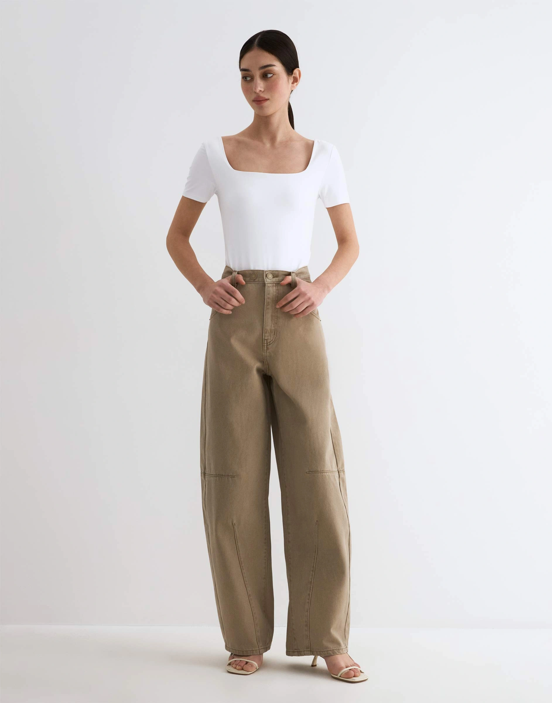 Оливковые джинсы Tapered с высокой посадкой Gjn035297-1
