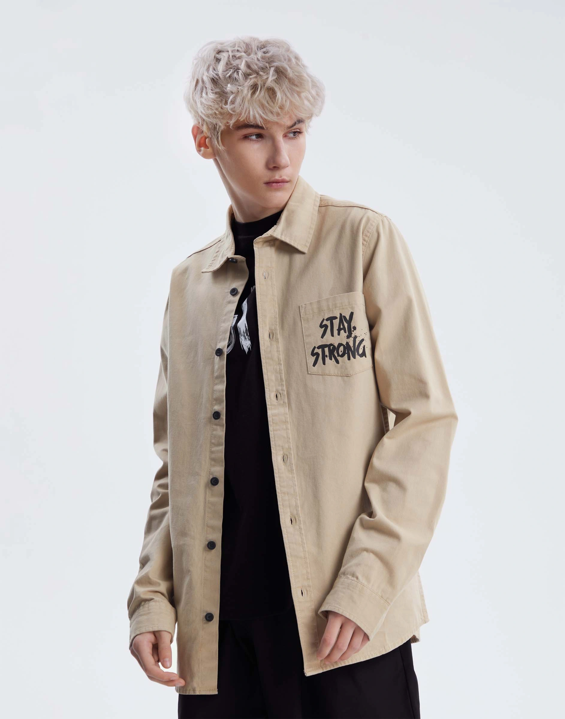 Бежевая свободная рубашка с принтом Bwt001917-1