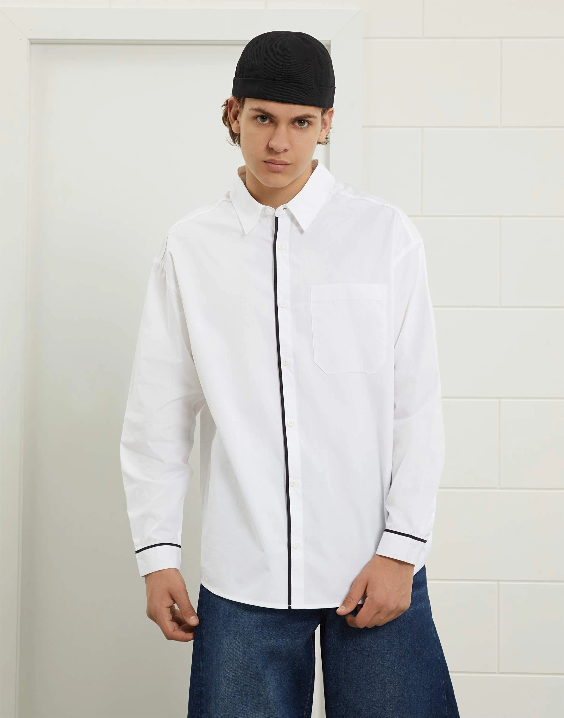 Белая школьная рубашка oversize с контрастной линией Bsu000433-1