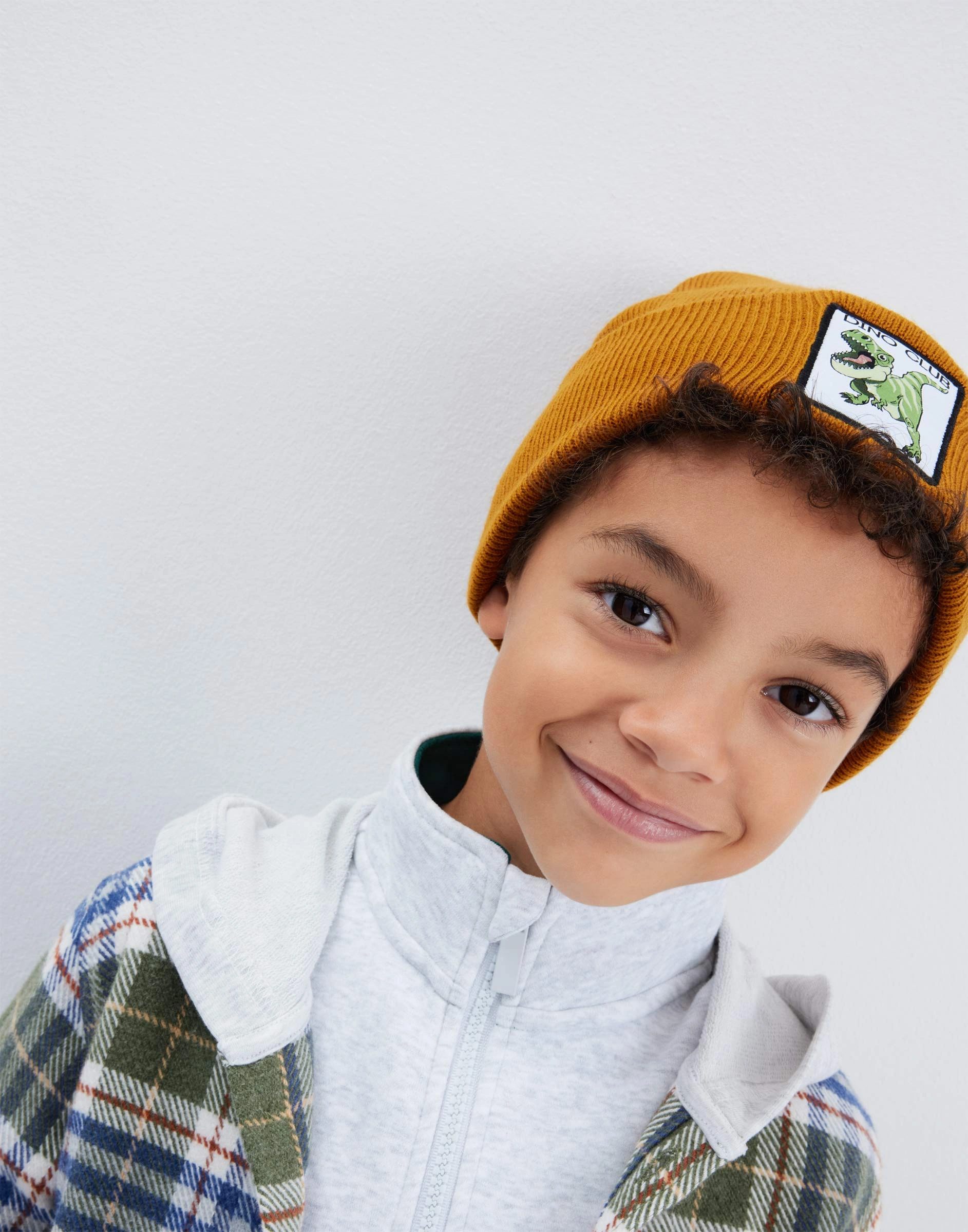 Горчичная шапка-бини с патчем для мальчика Bas006251-1