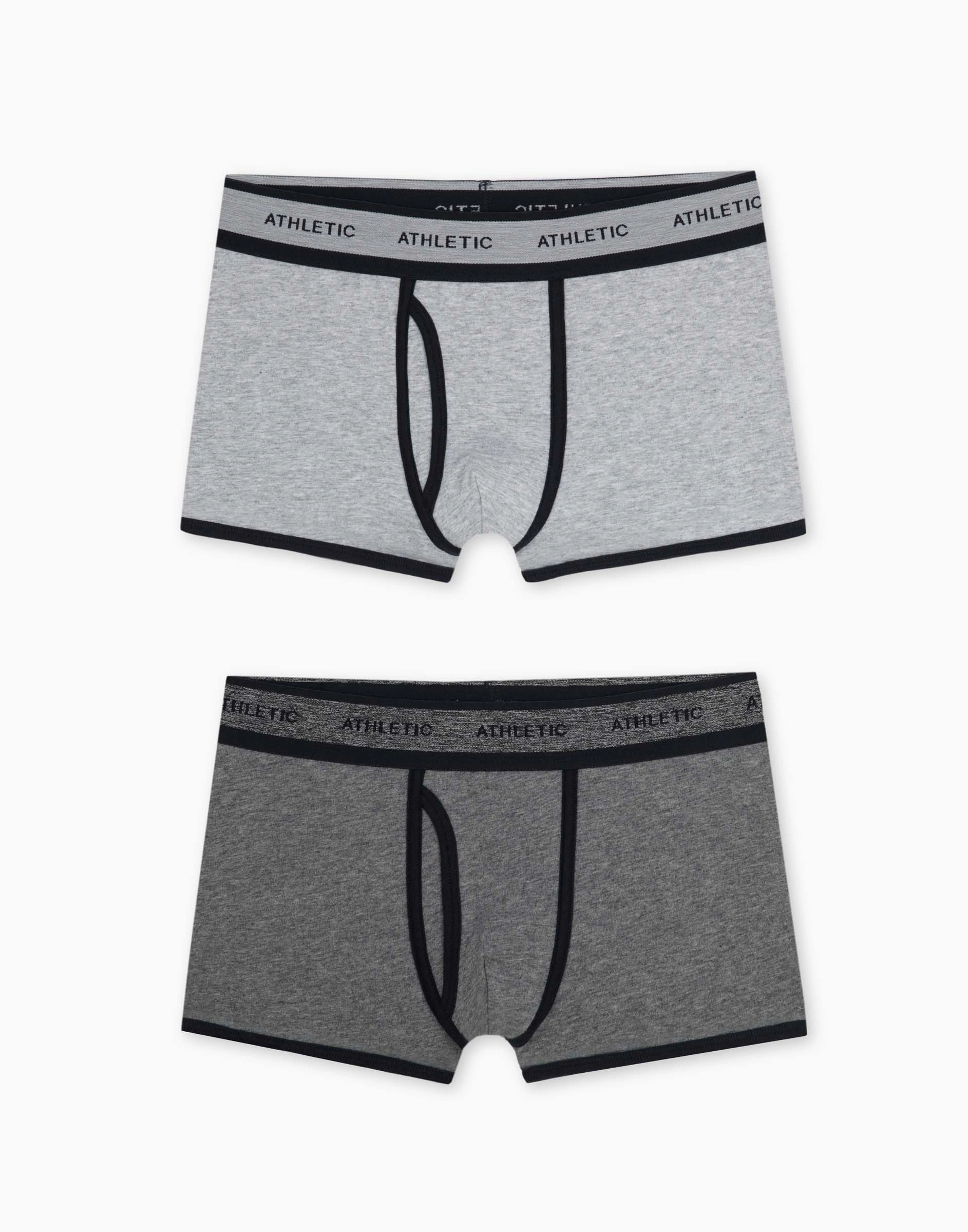 Серые трусы-боксеры в рубчик с надписью 2 шт. Buw003981-1