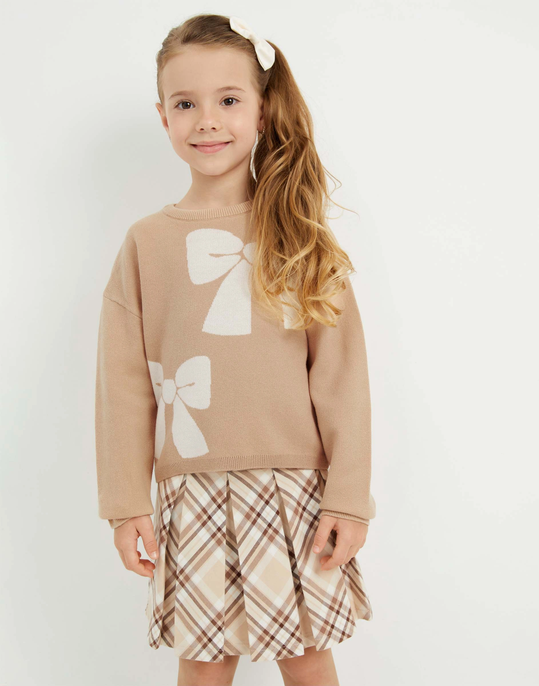 Бежевый джемпер с жаккардовым рисунком для девочки Gsw007967-2