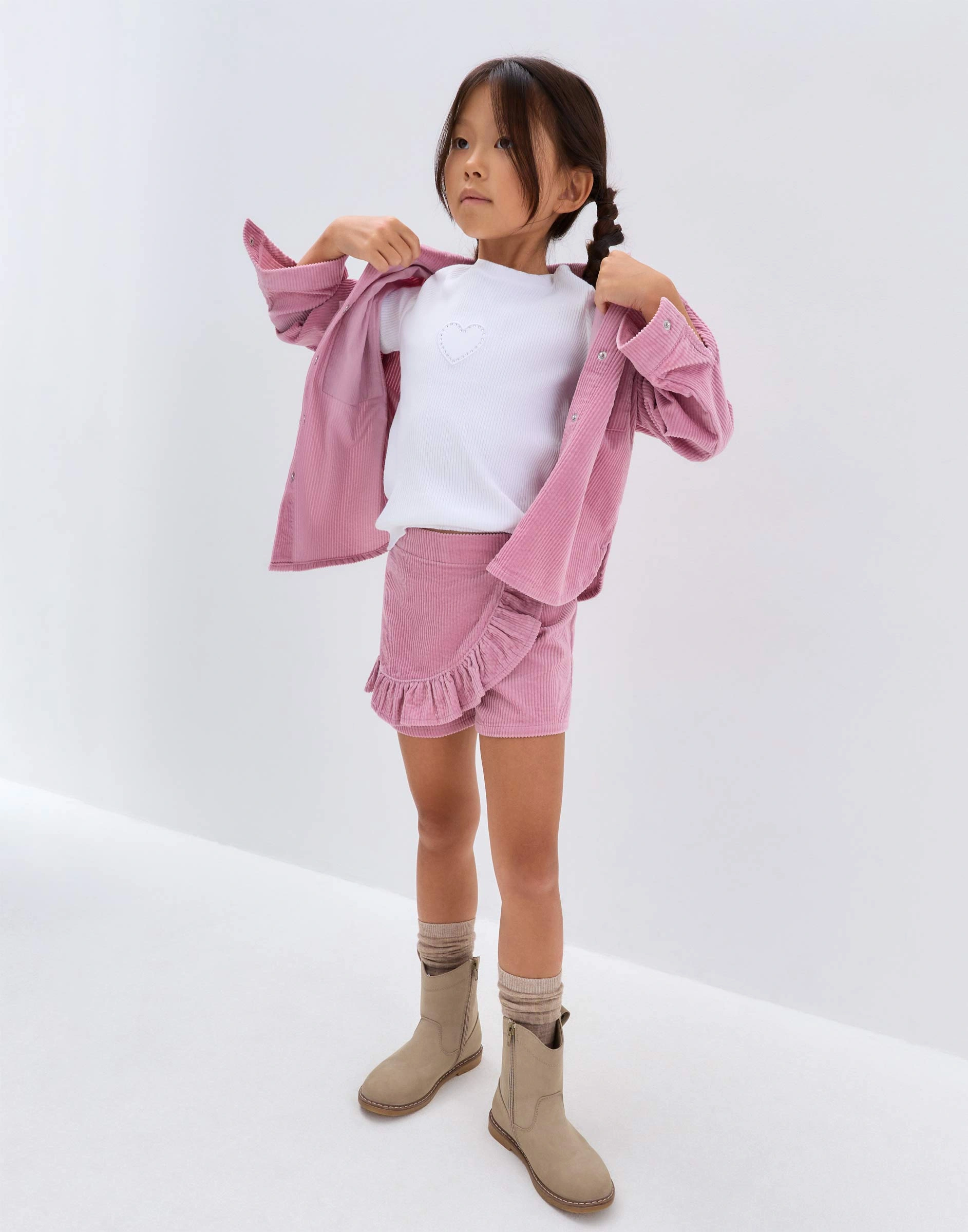 Белая футболка в рубчик с волнистым краем для девочки Gkt027187-1