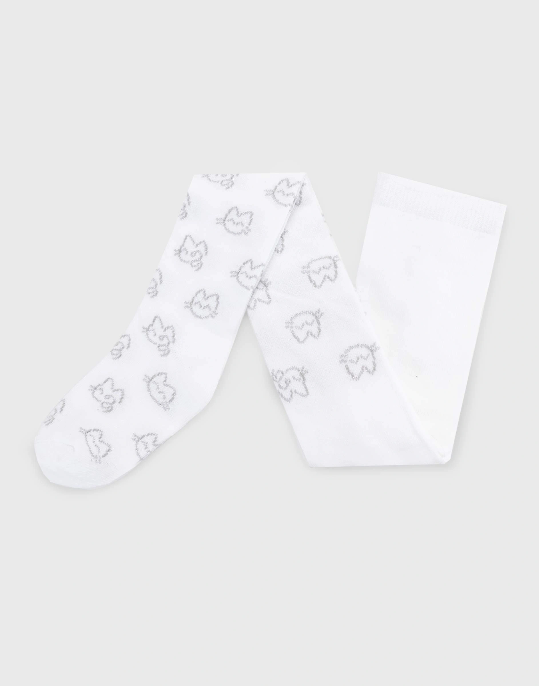 Белые колготки с котами из люрекса для девочки Ghs010900-1