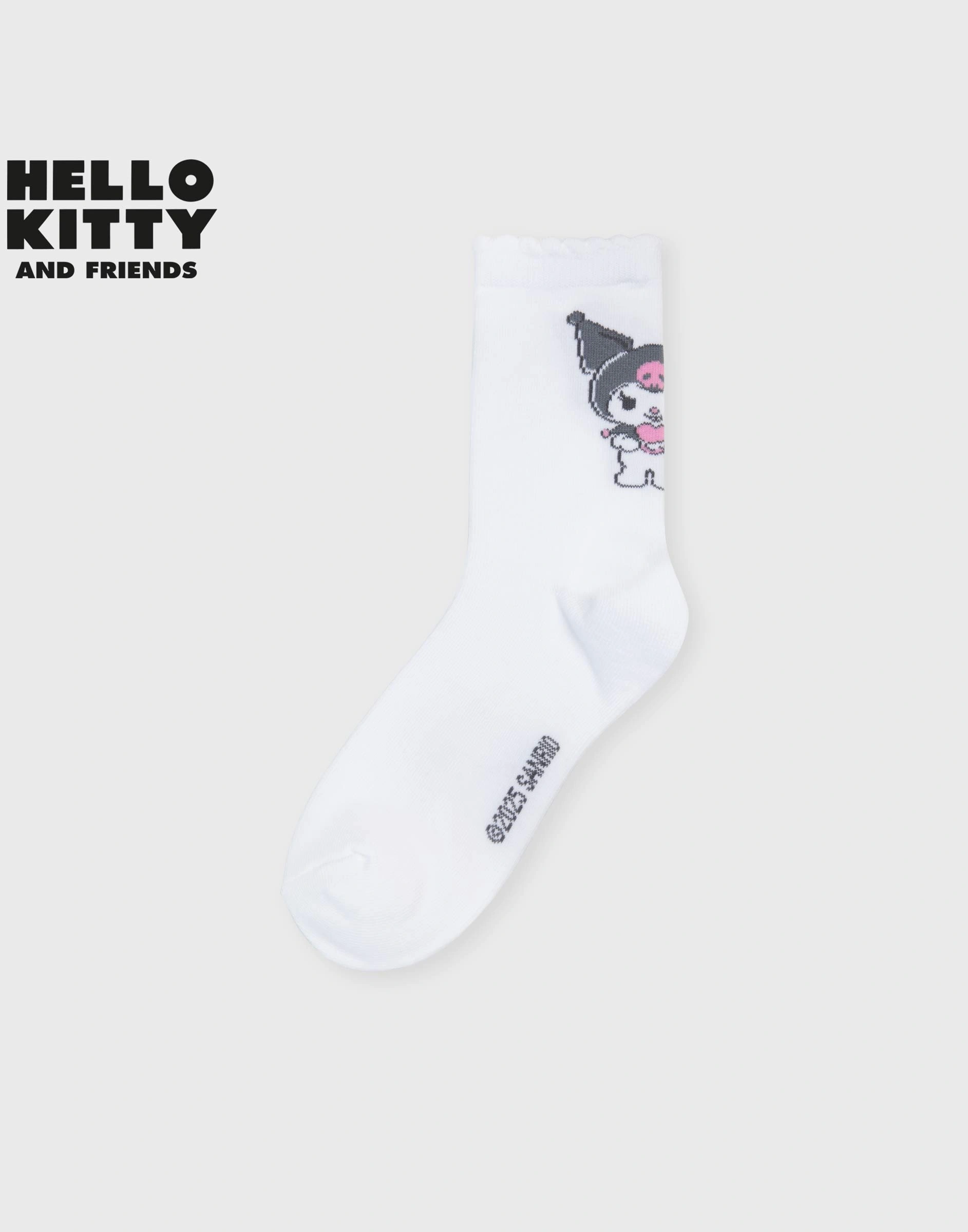 Белые носки с принтом Kuromi и помпонами Ghs010679-1