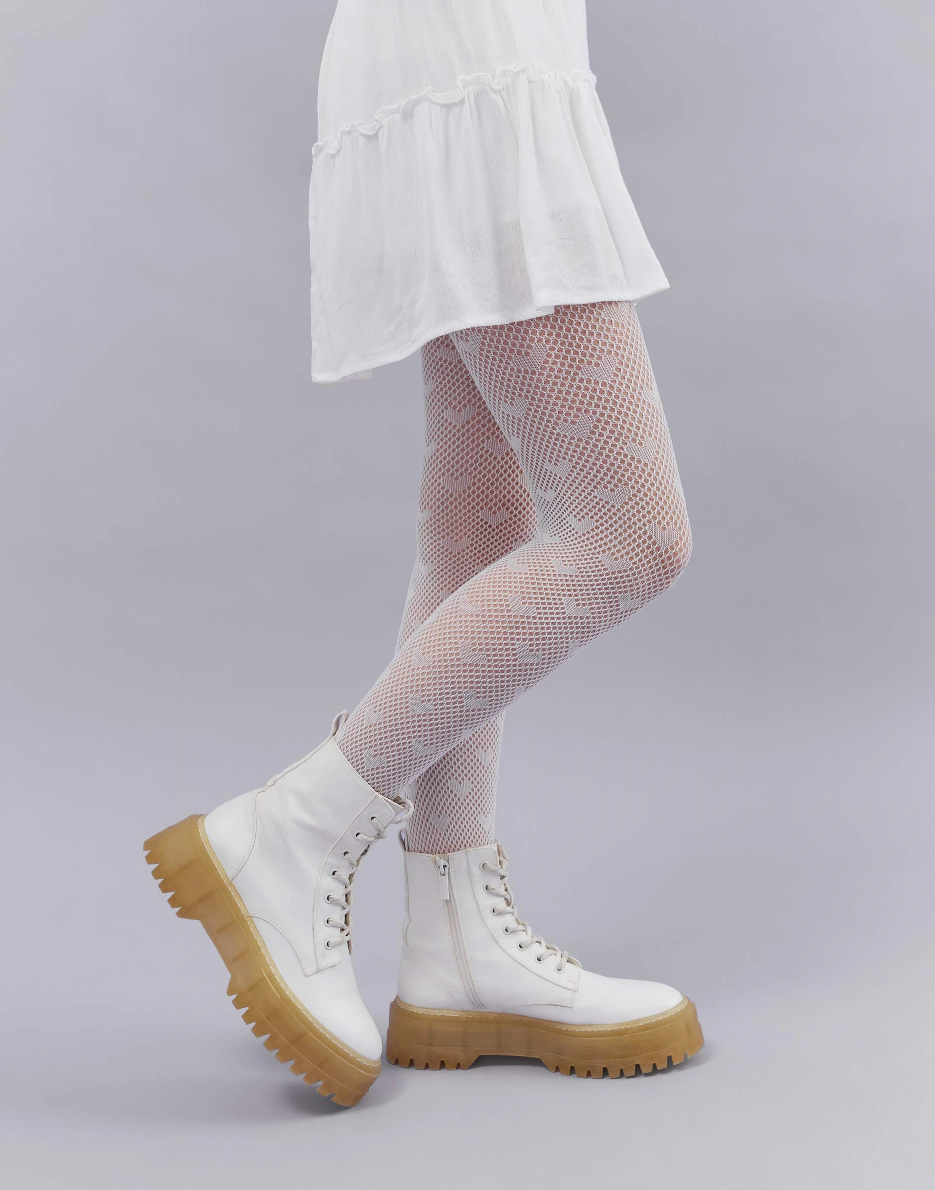 Белые сетчатые колготки с сердечками Ghs010856-1