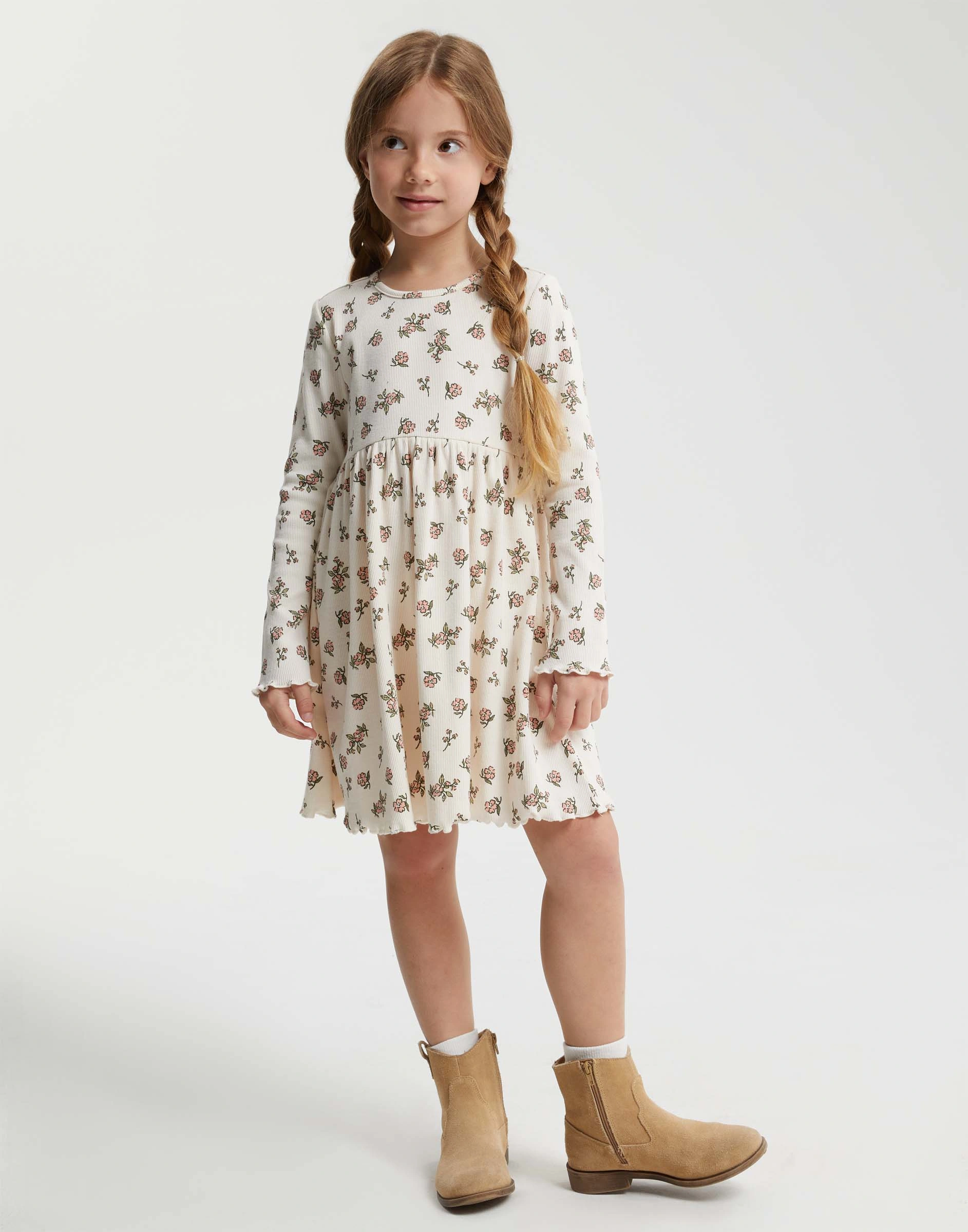 Молочное платье с принтом для девочки Gdr030338-1