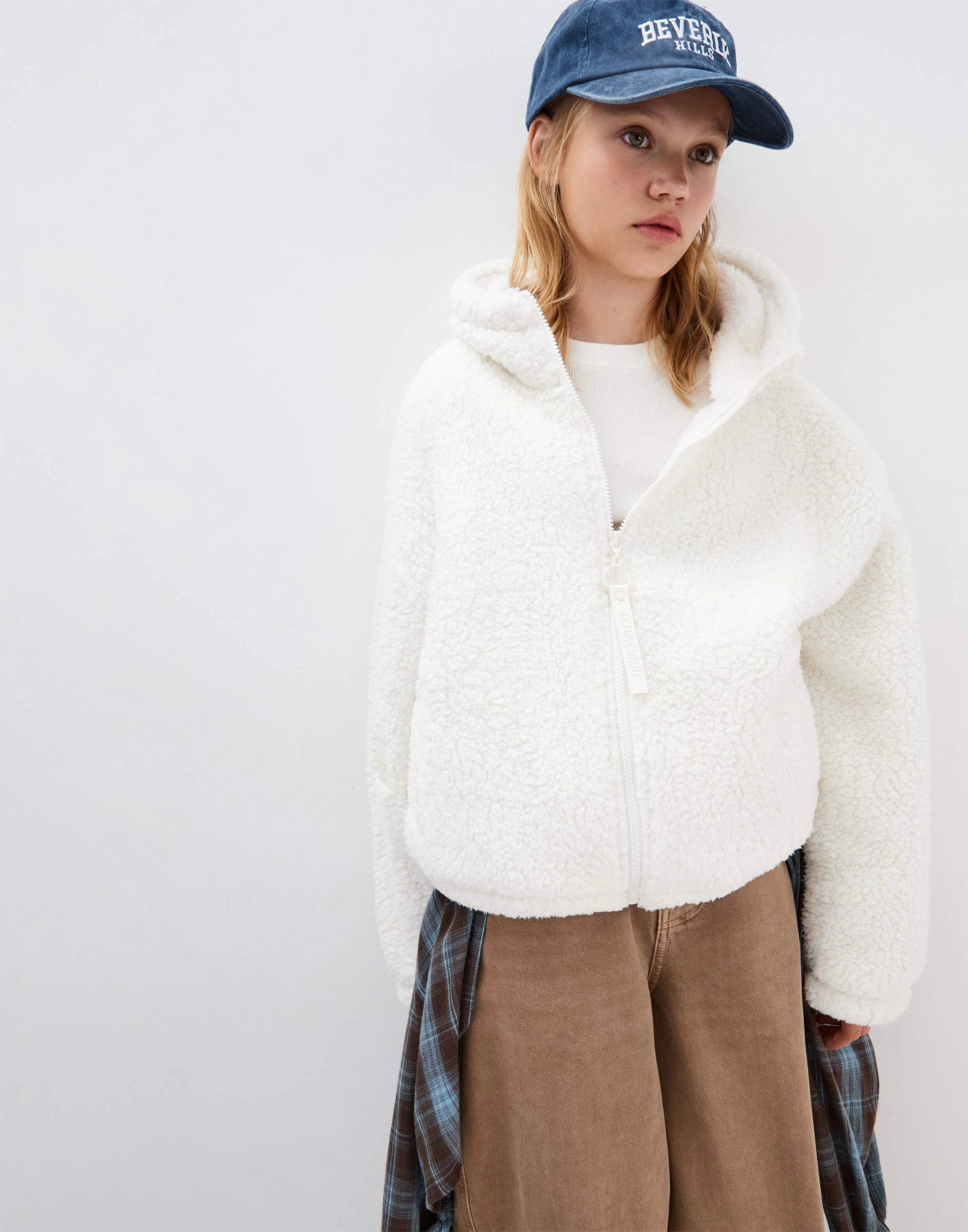 Молочное худи oversize на молнии из искусственного меха Gfu000031-1