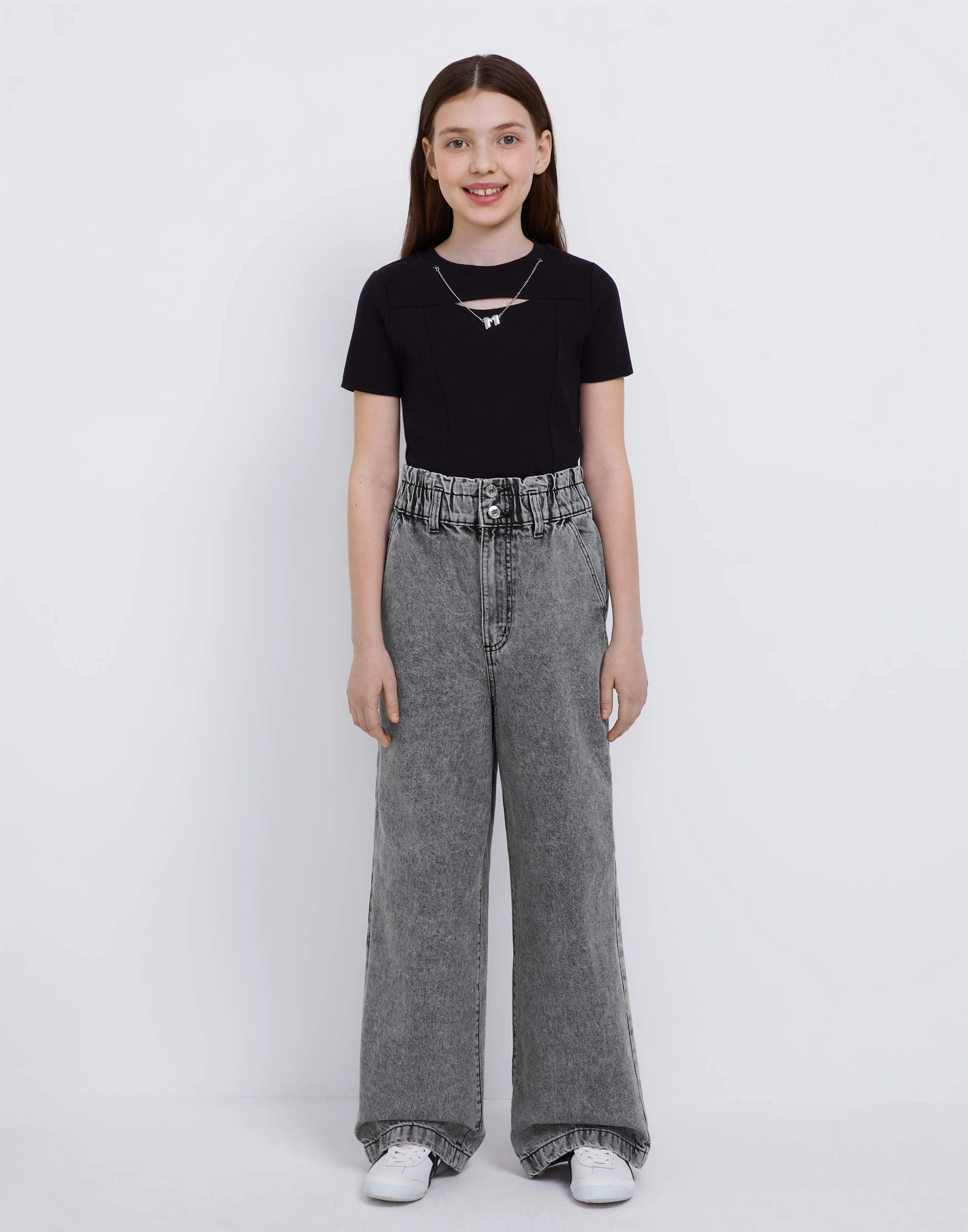 Серые джинсы Paperbag с высокой посадкой Gjn035278-1