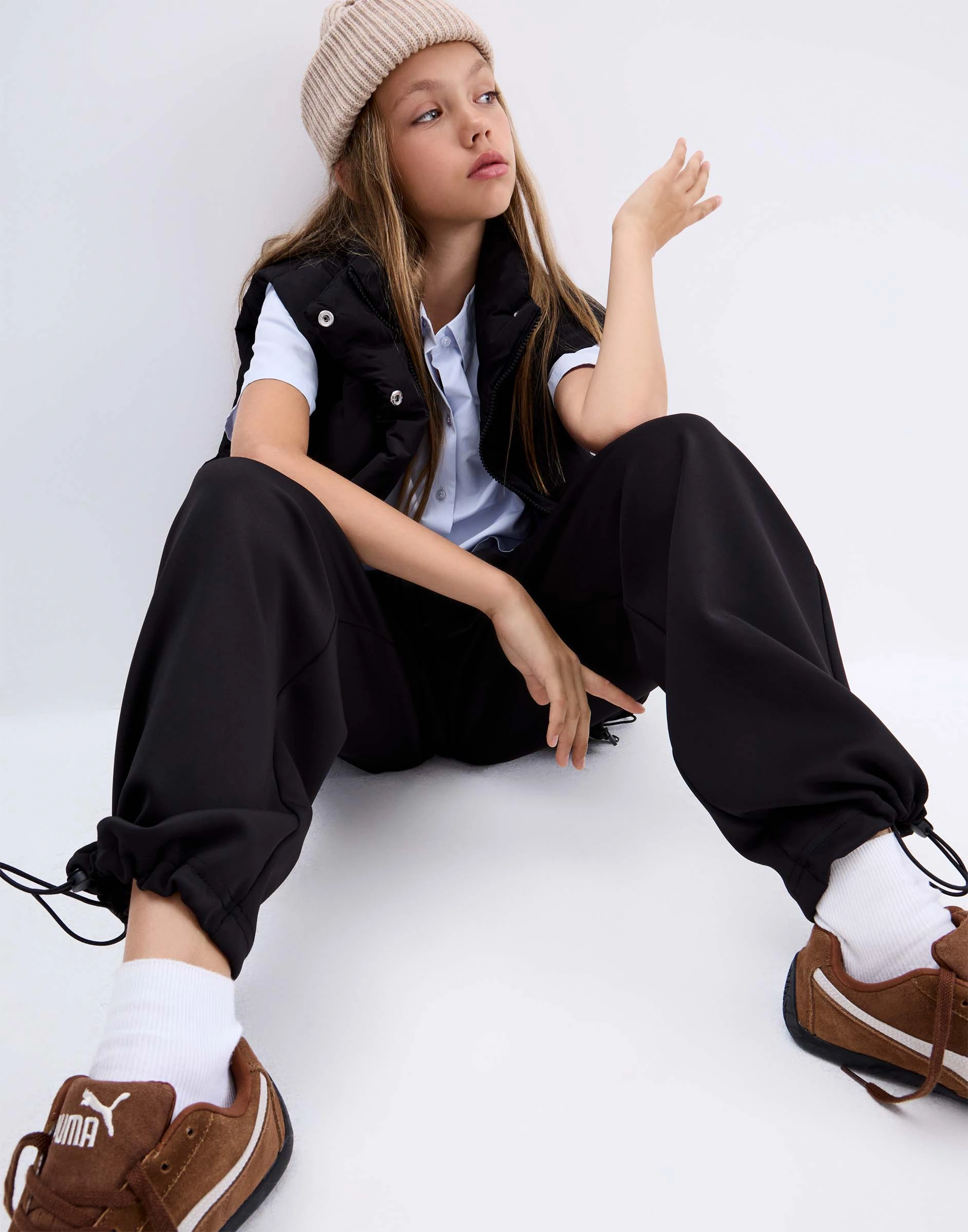 Чёрные спортивные брюки-трансформеры с принтом Gac024537-1