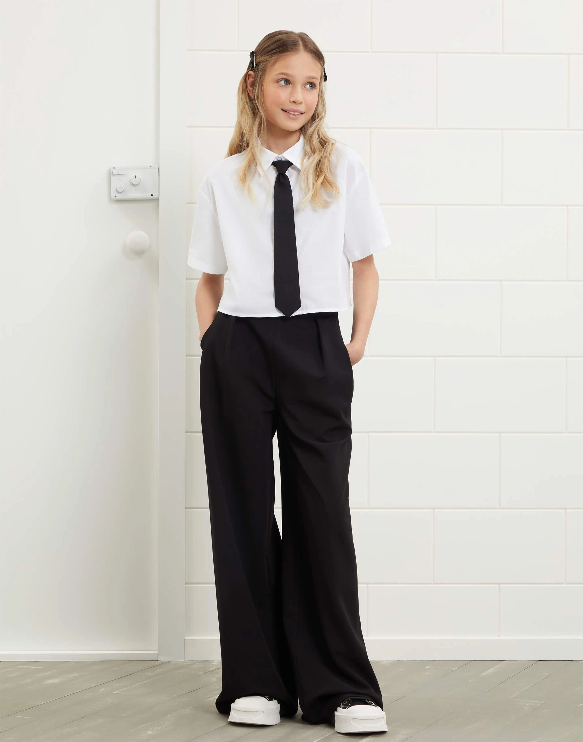 Чёрные школьные брюки Wide leg с защипами Gsu001292-2