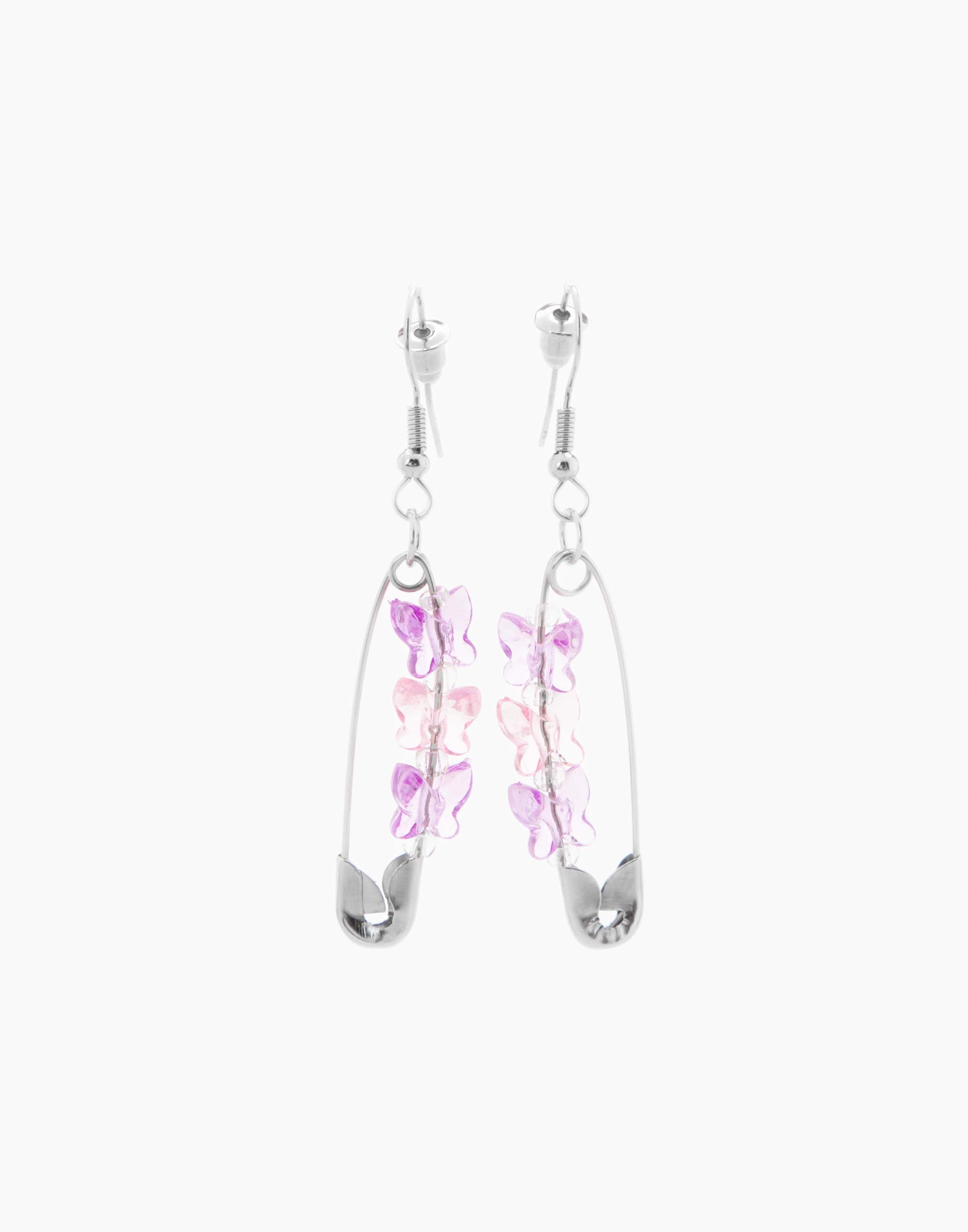 Серебристые серьги- булавки с бабочками Gjw012661-1