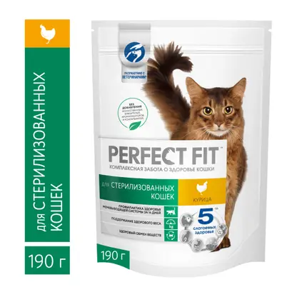 Сухой корм для стерилизованных кошек Perfect Fit с курицей 190г