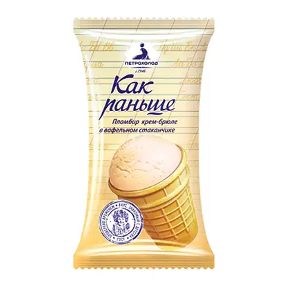 Мороженое Как раньше Пломбир Крем-брюле в вафельном стаканчике 70г
