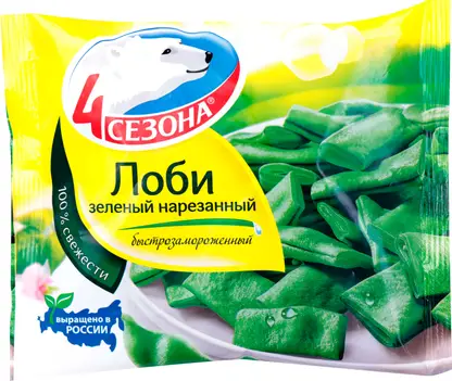 Лоби 4 Сезона зеленый нарезанный быстрозамороженный 400г