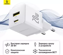 Сетевое зарядное устройство Baseus Palm Fast Charger C+u 20W Eu Moon White (P10111608213-00)