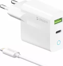 Сетевое зарядное устройство Deppa Pd/qc 3.0 20W + кабель Usb-c-lightning (Mfi), 1.2 м (11396)