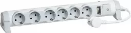 Сетевой фильтр Legrand Комфорт и безопасность 6х2к+з, 3 м, с заземлением, с выключателем, белый/серый (694647)