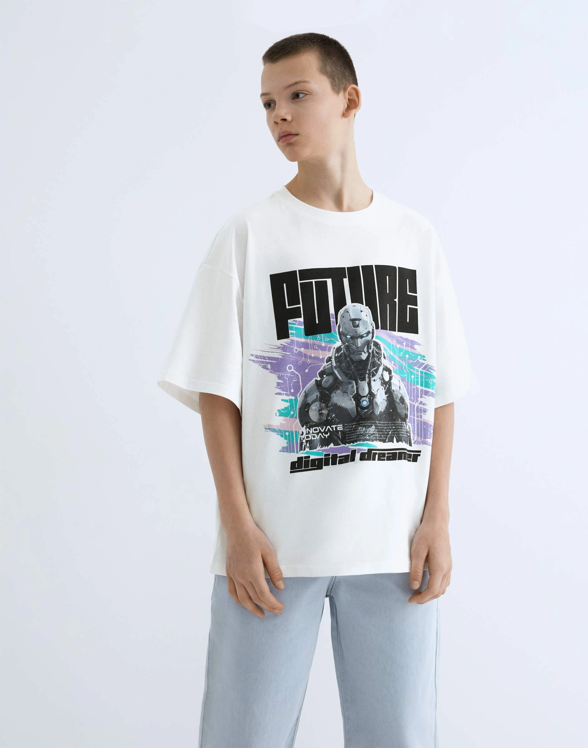 Белая футболка oversize с принтом Bkt017211-1