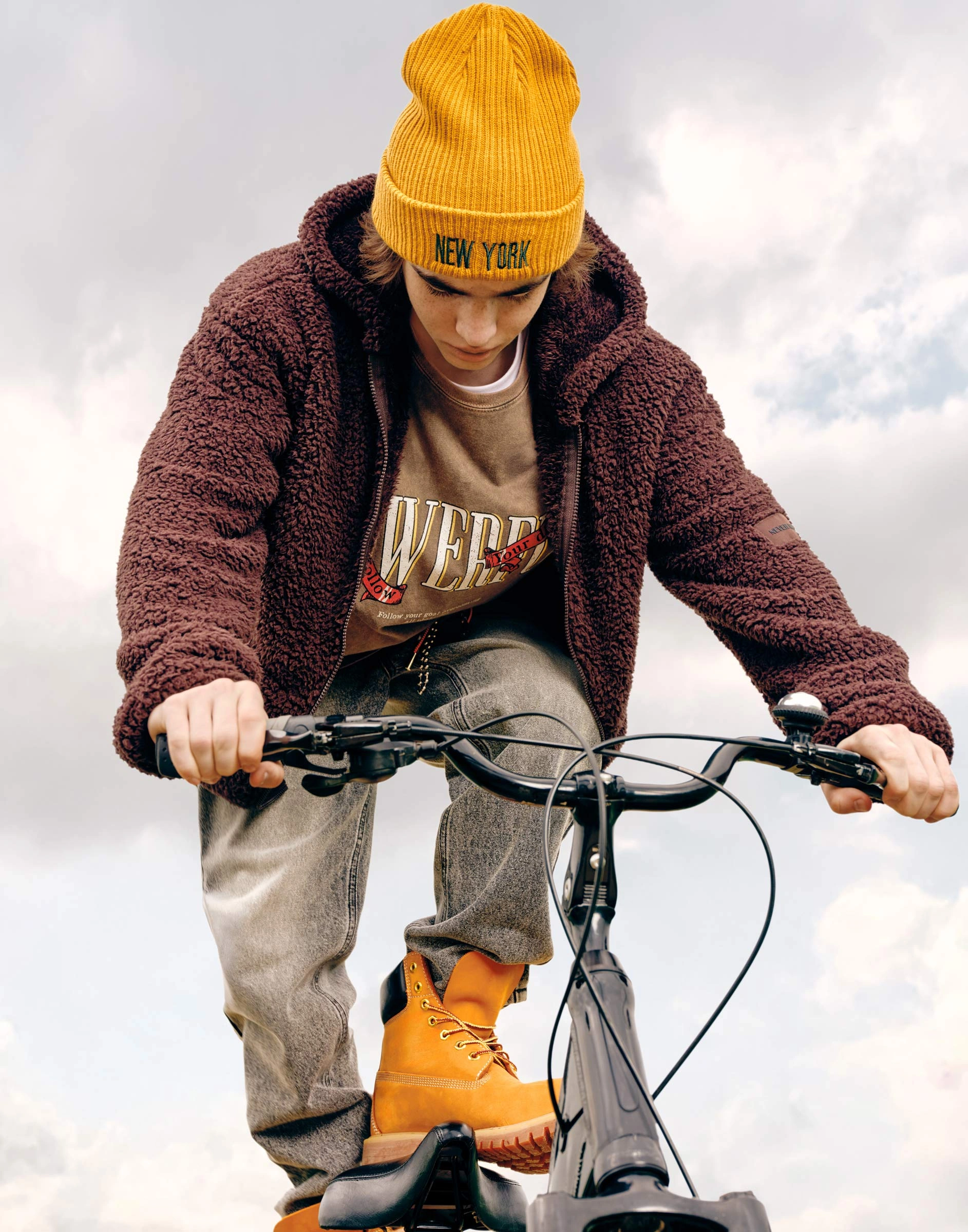 Коричневая меховая куртка oversize с капюшоном из шерпы Bfu000021-1
