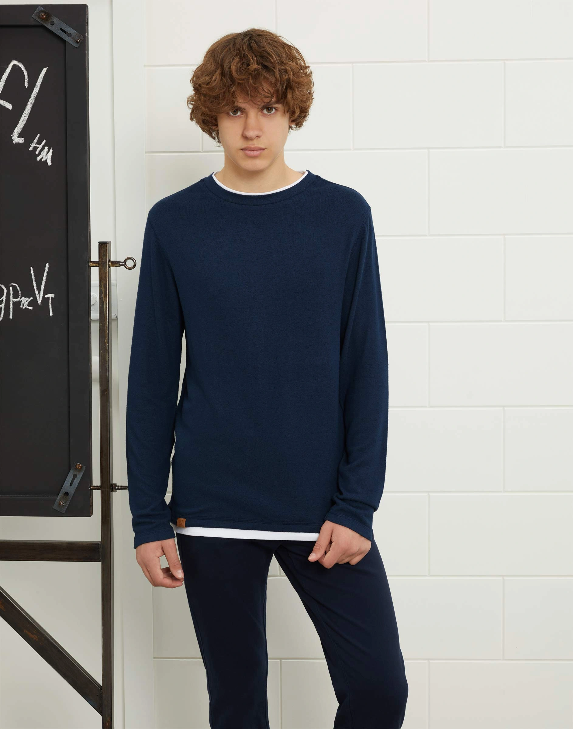 Синий лонгслив с многослойным эффектом Bkt016999-2