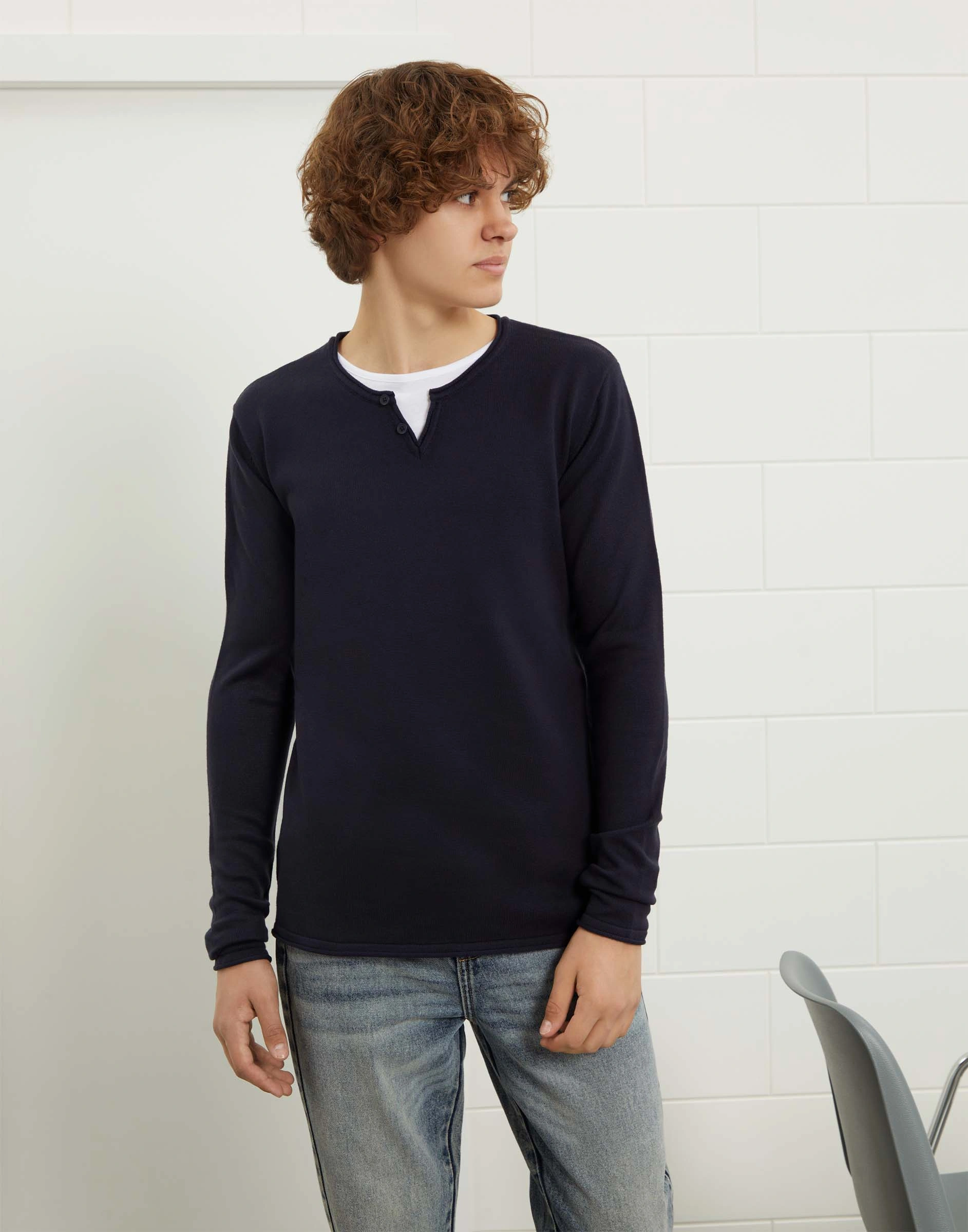 Тёмно-синий многослойный джемпер с планкой Bsw002574-1