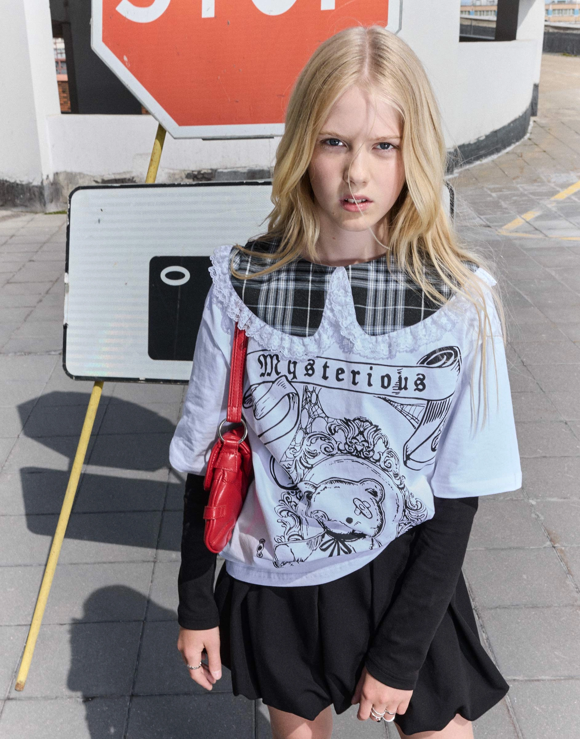 Белая футболка oversize с воротником и принтом Gkt027321-1