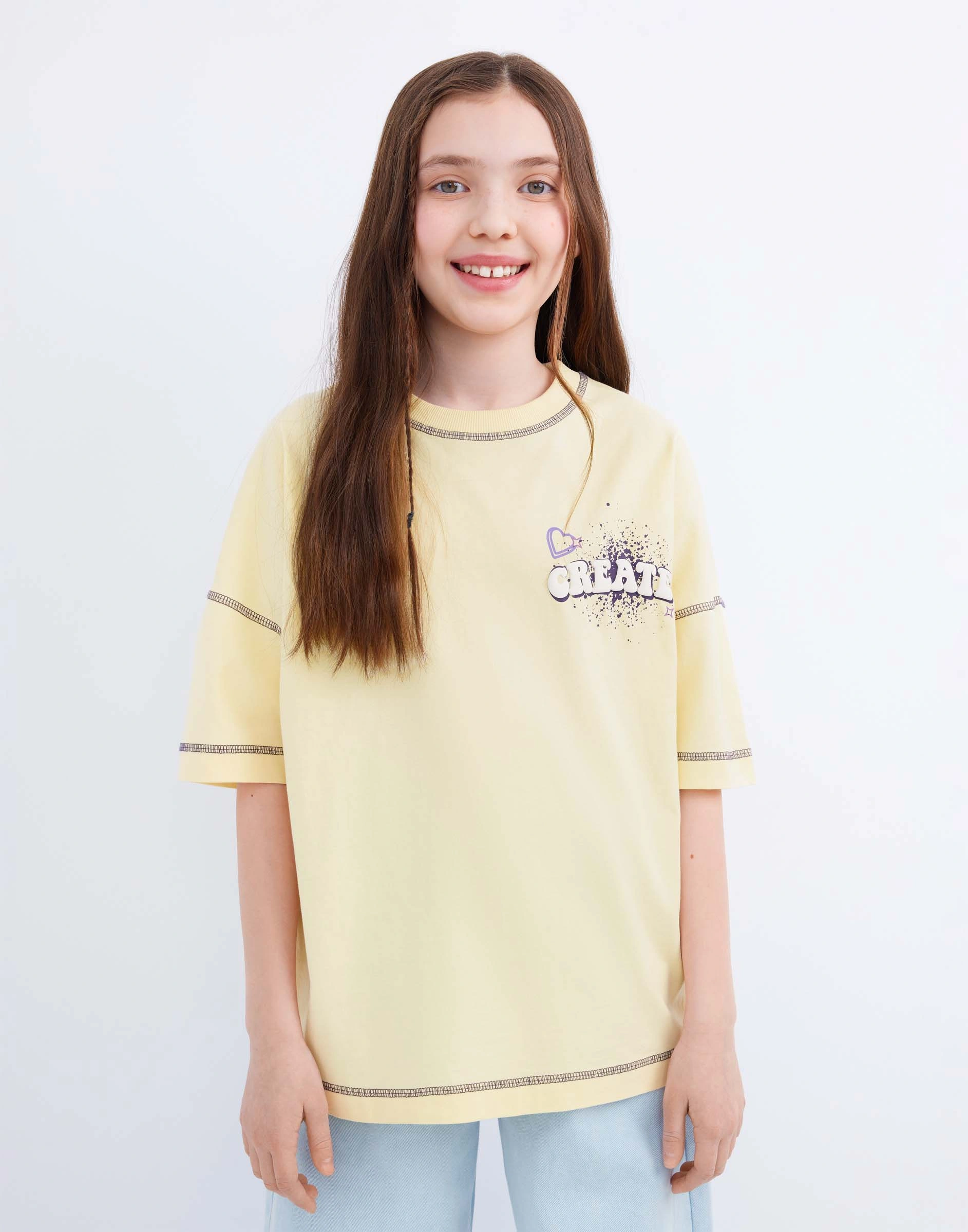 Жёлтая футболка oversize с принтом Gkt026323-2