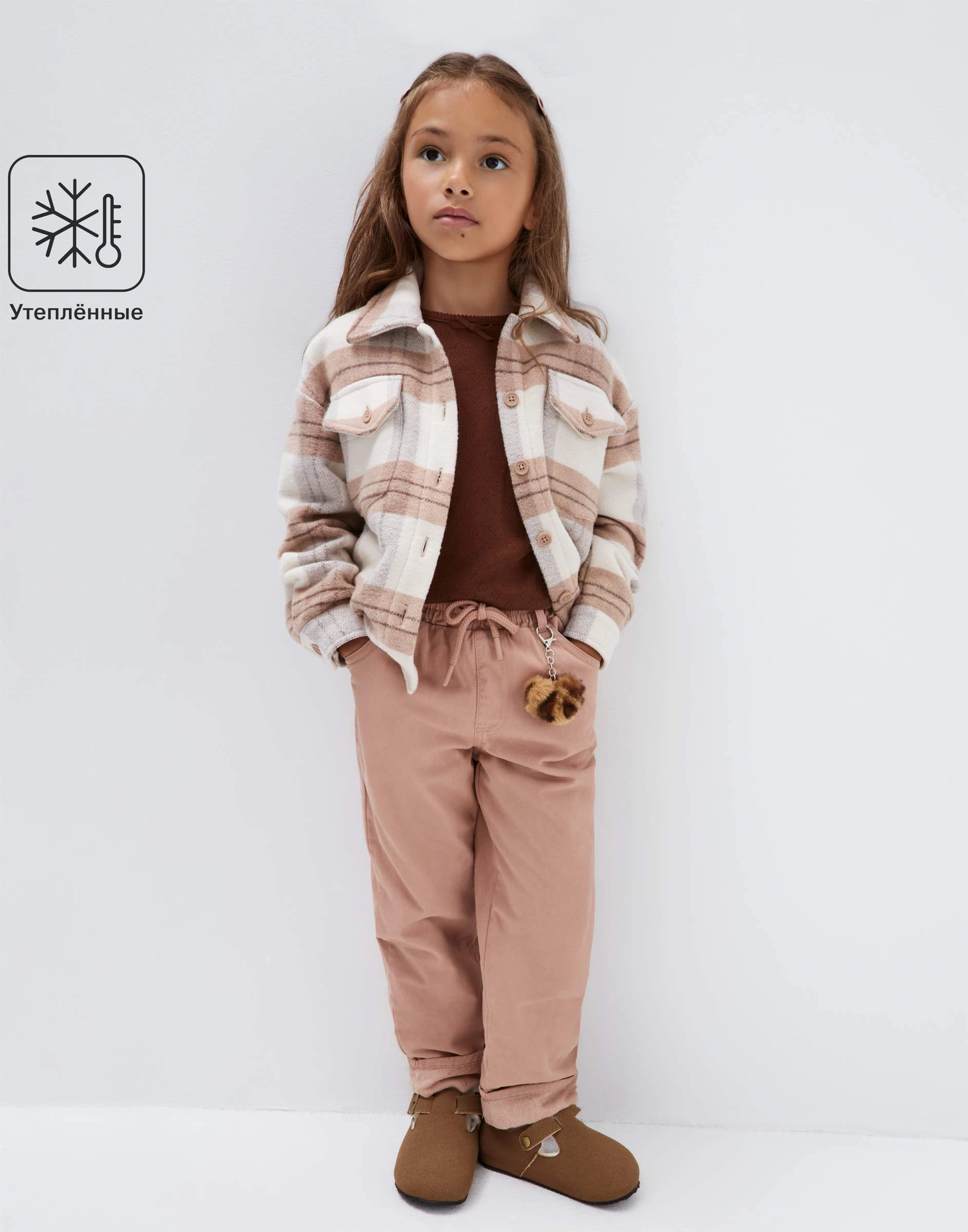 Коричневые утеплённые брюки Straight с брелоком для девочки Gwb001502-2