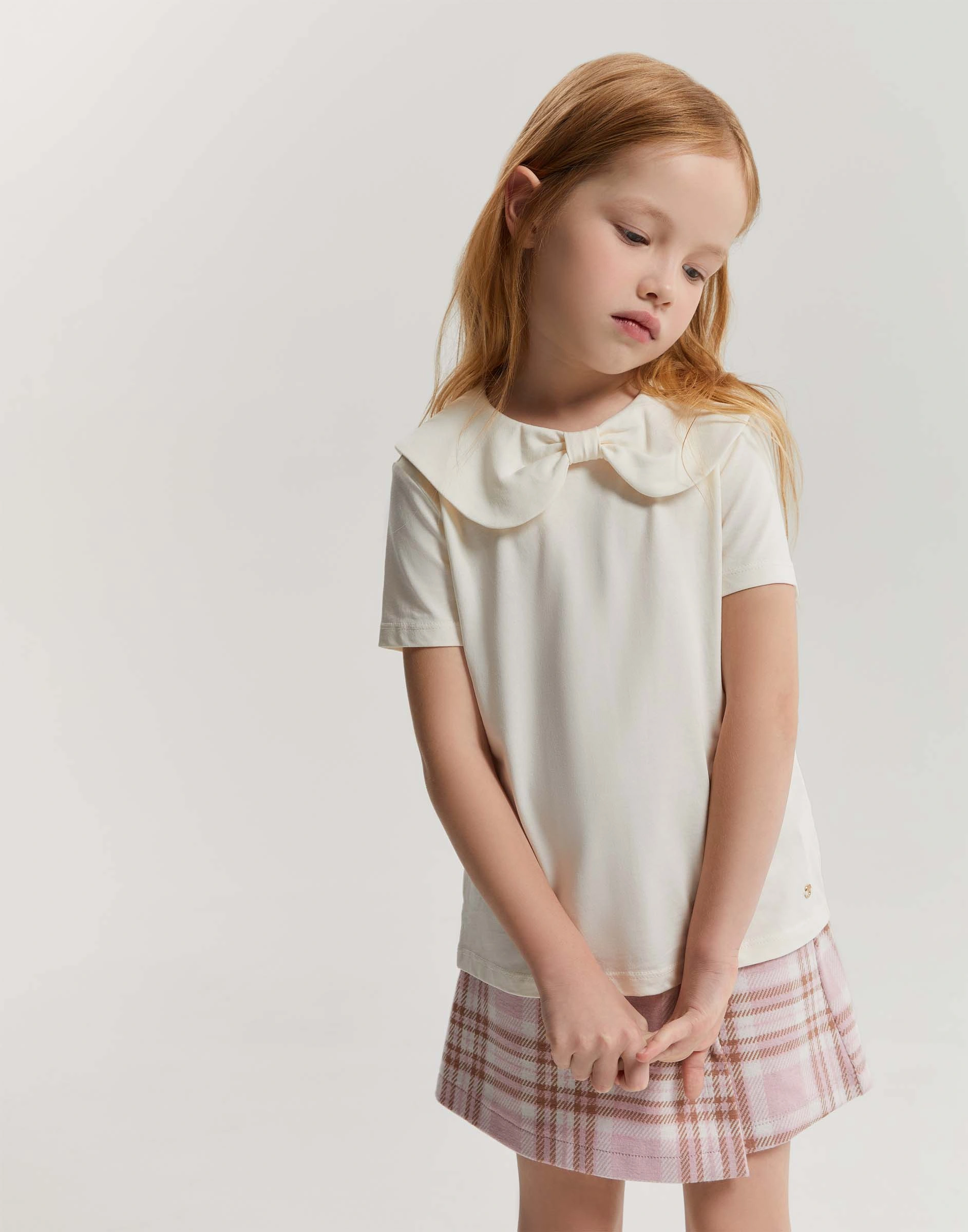 Молочная футболка с воротником-бантом для девочки Gkt027355-1