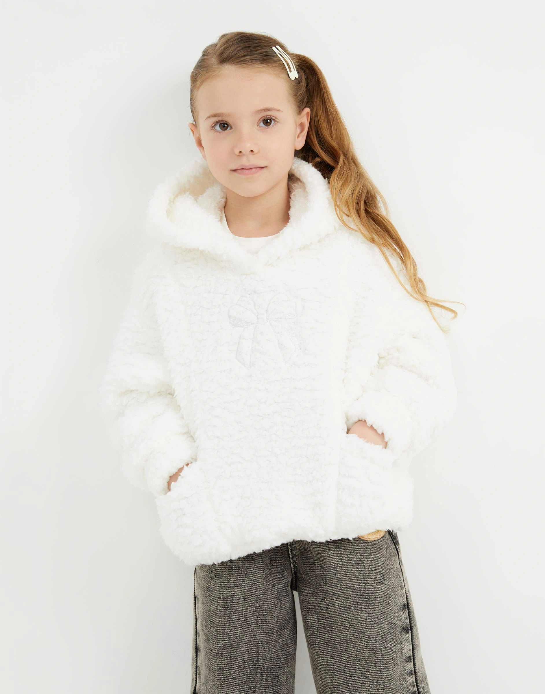 Молочное худи oversize из искусственного меха для девочки Gfu000006-2