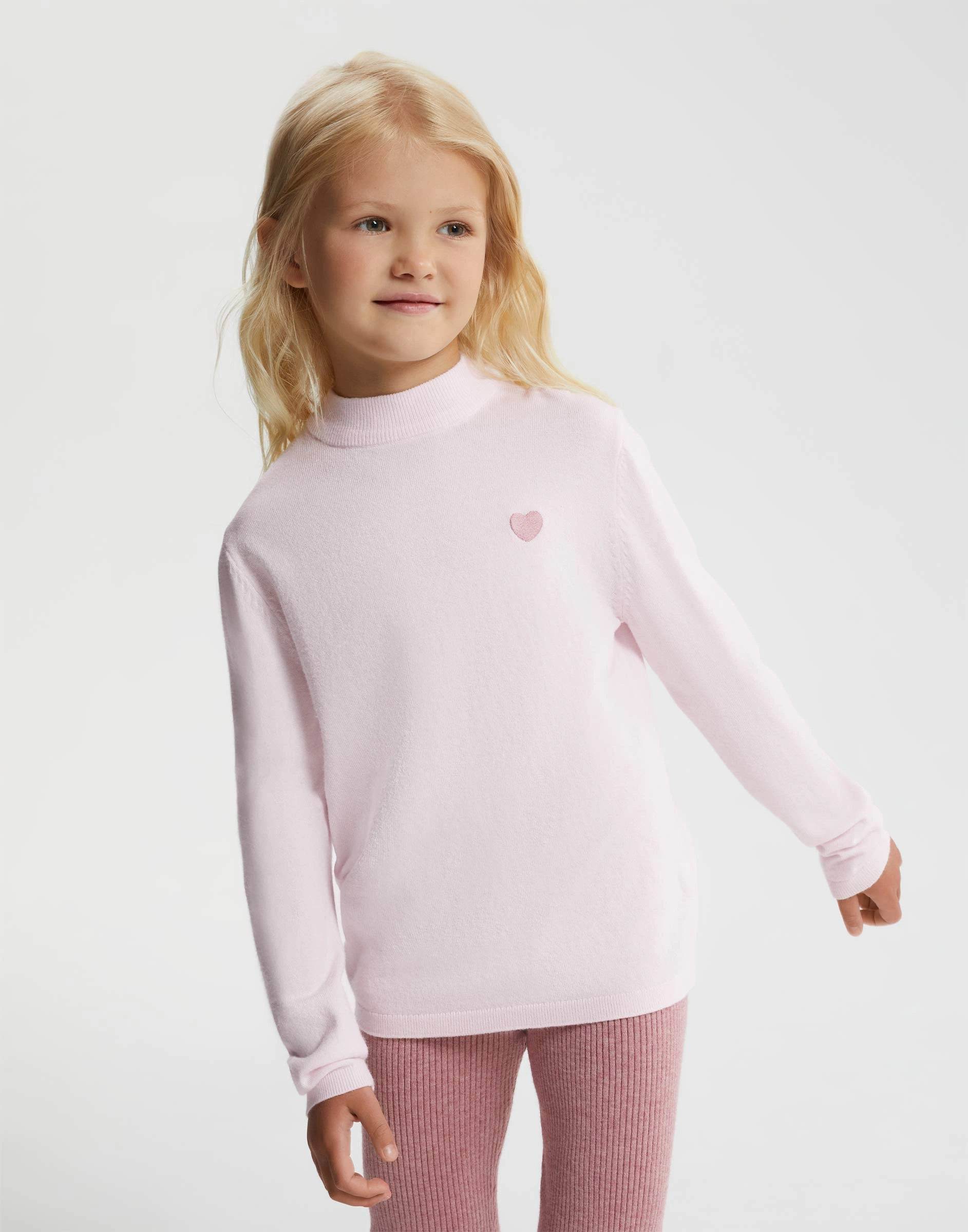 Светло-розовая водолазка oversize с вышивкой для девочки Gsw007962-2
