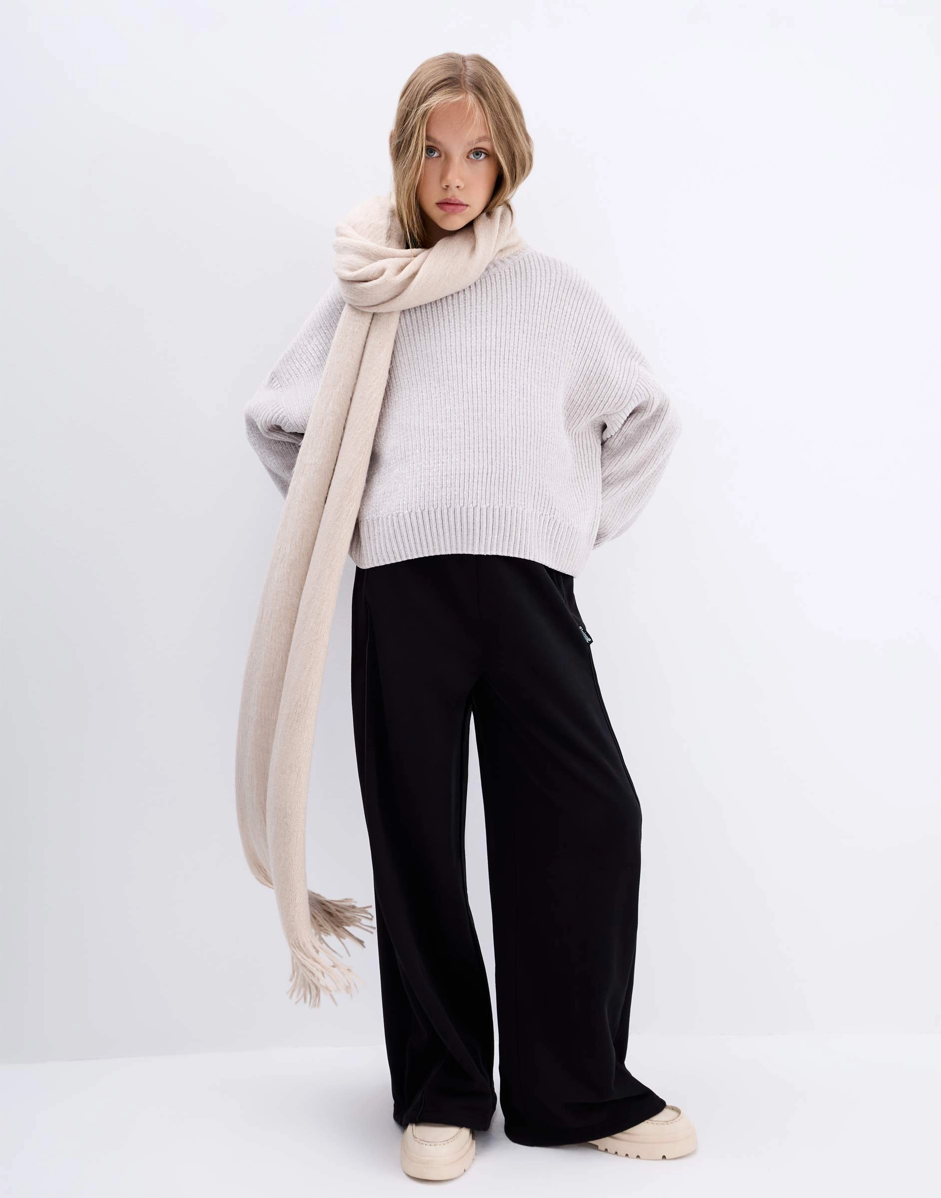 Чёрные брюки-трансформеры Wide leg с лампасами Gac024427-1
