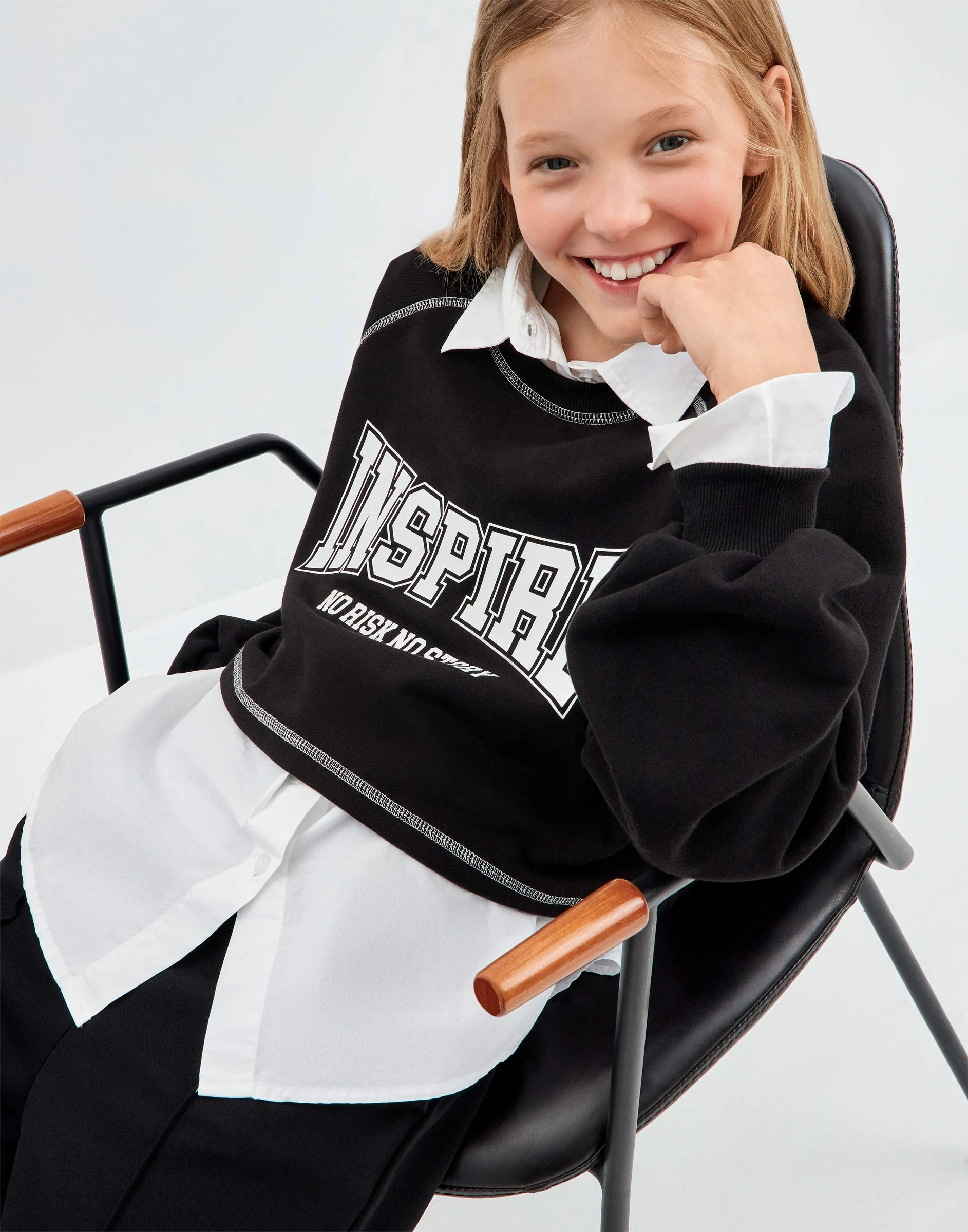 Чёрный укороченный свитшот oversize с принтом Gac023480-1