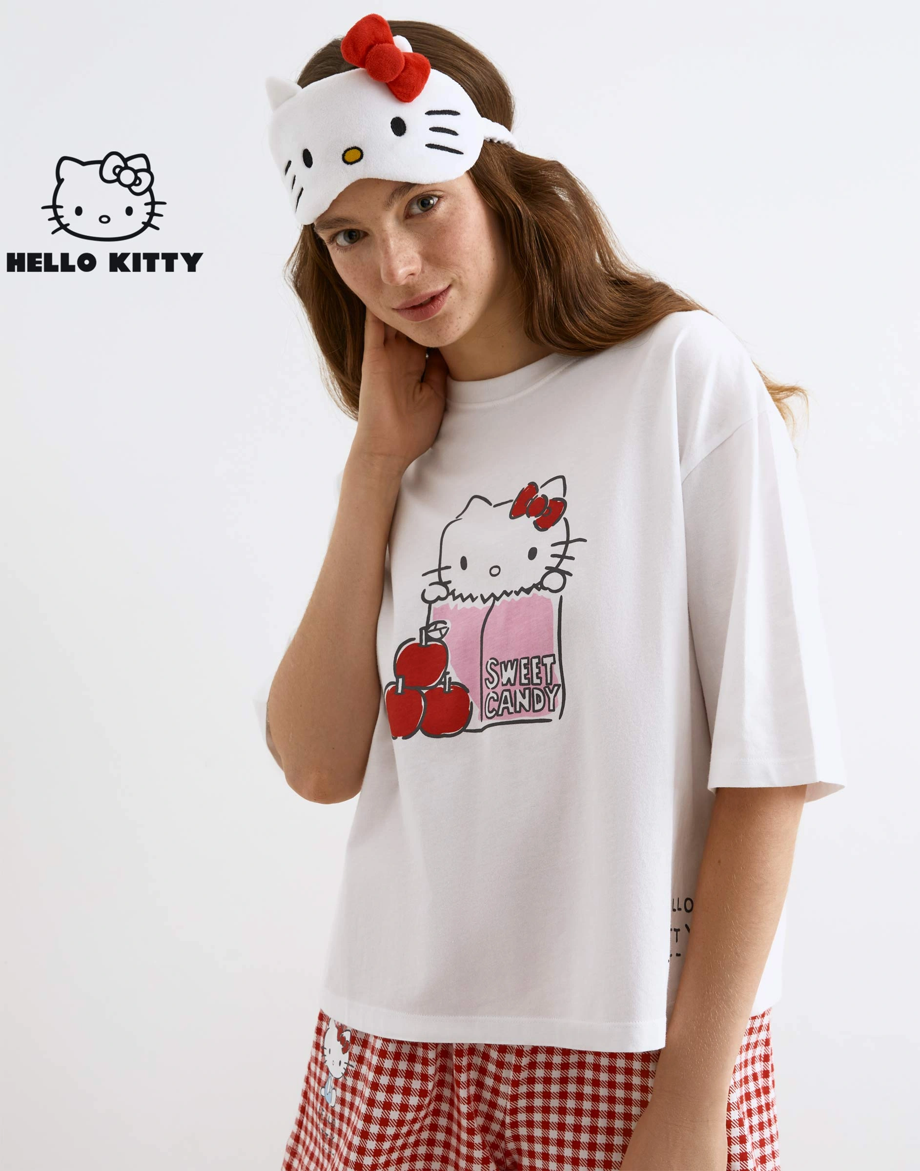 Белая пижамная футболка oversize с принтом Hello Kitty Gsl002705-1