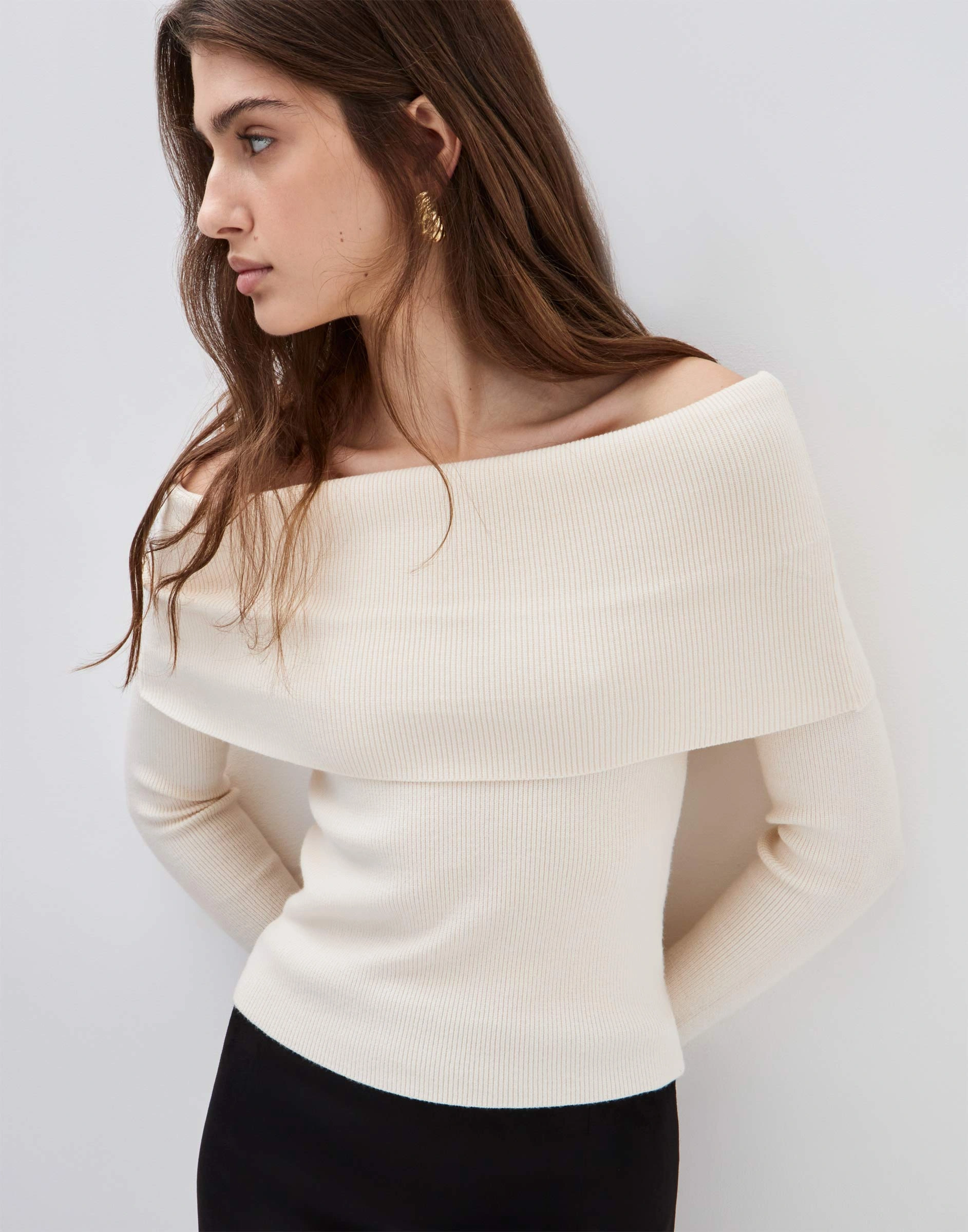 Персиковый джемпер с открытыми плечами Gsw007946-1
