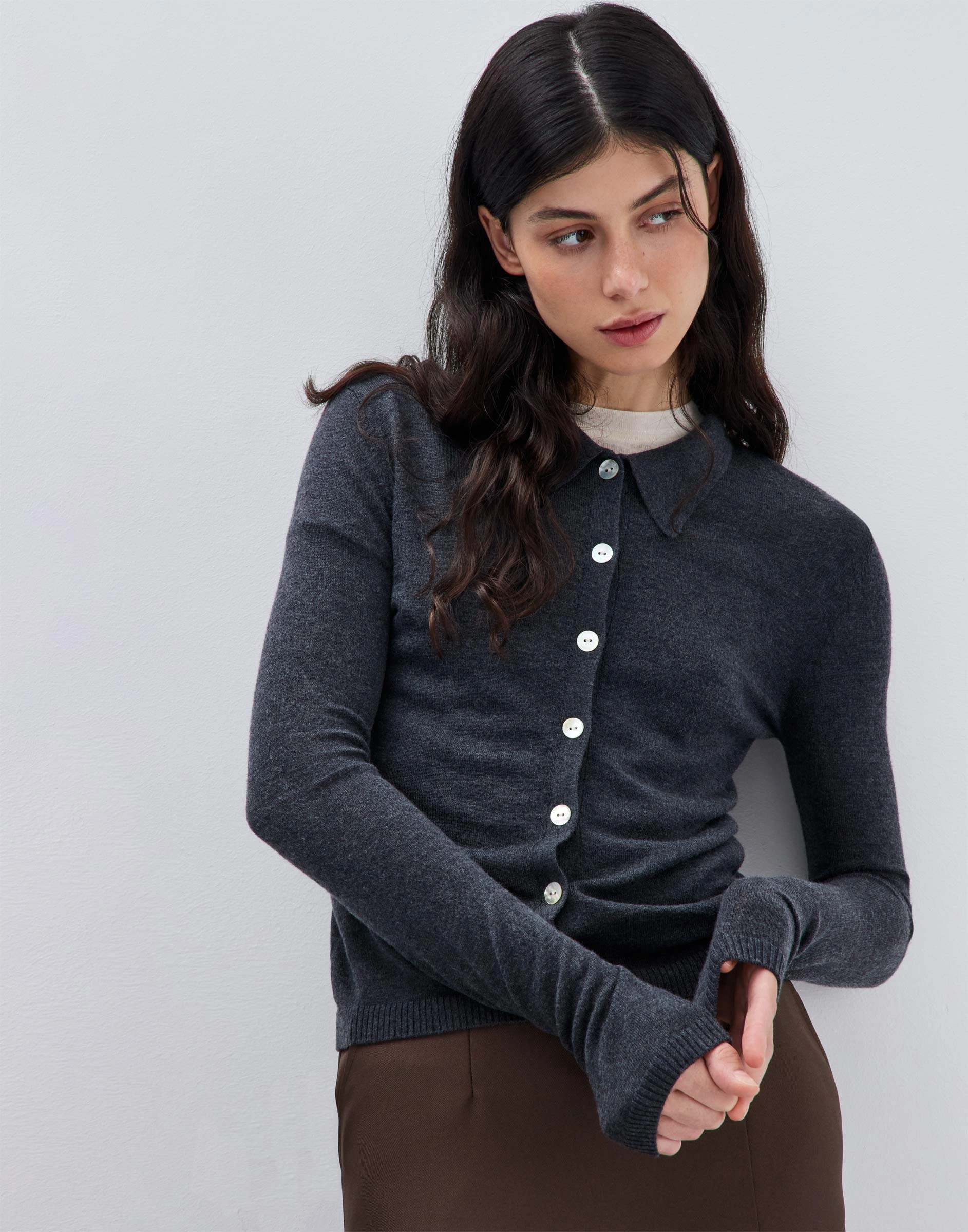 Тёмно-серый кардиган с отложным воротником Gsw007986-1