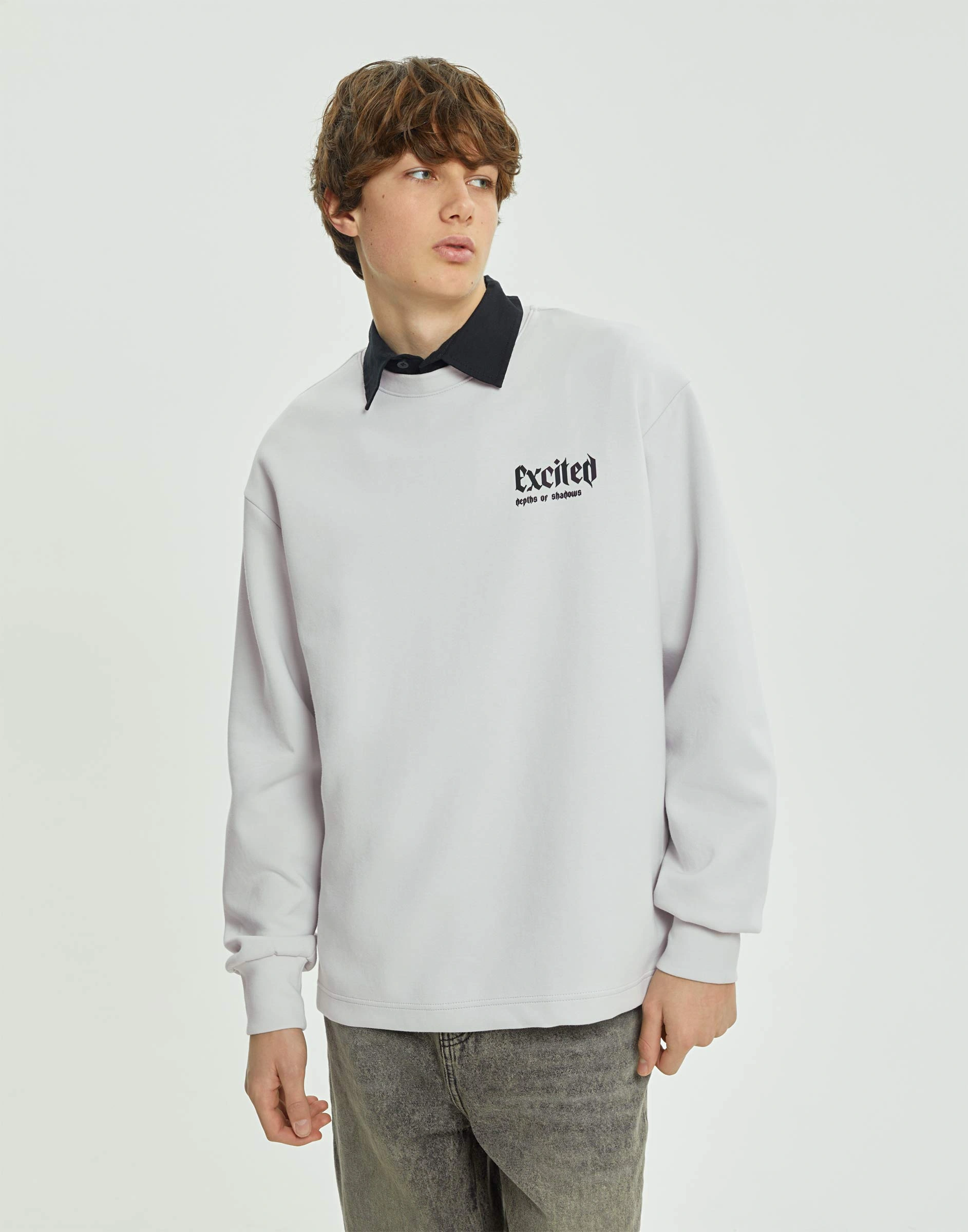 Светло-серый свитшот из скубы с принтом Bac014259-3