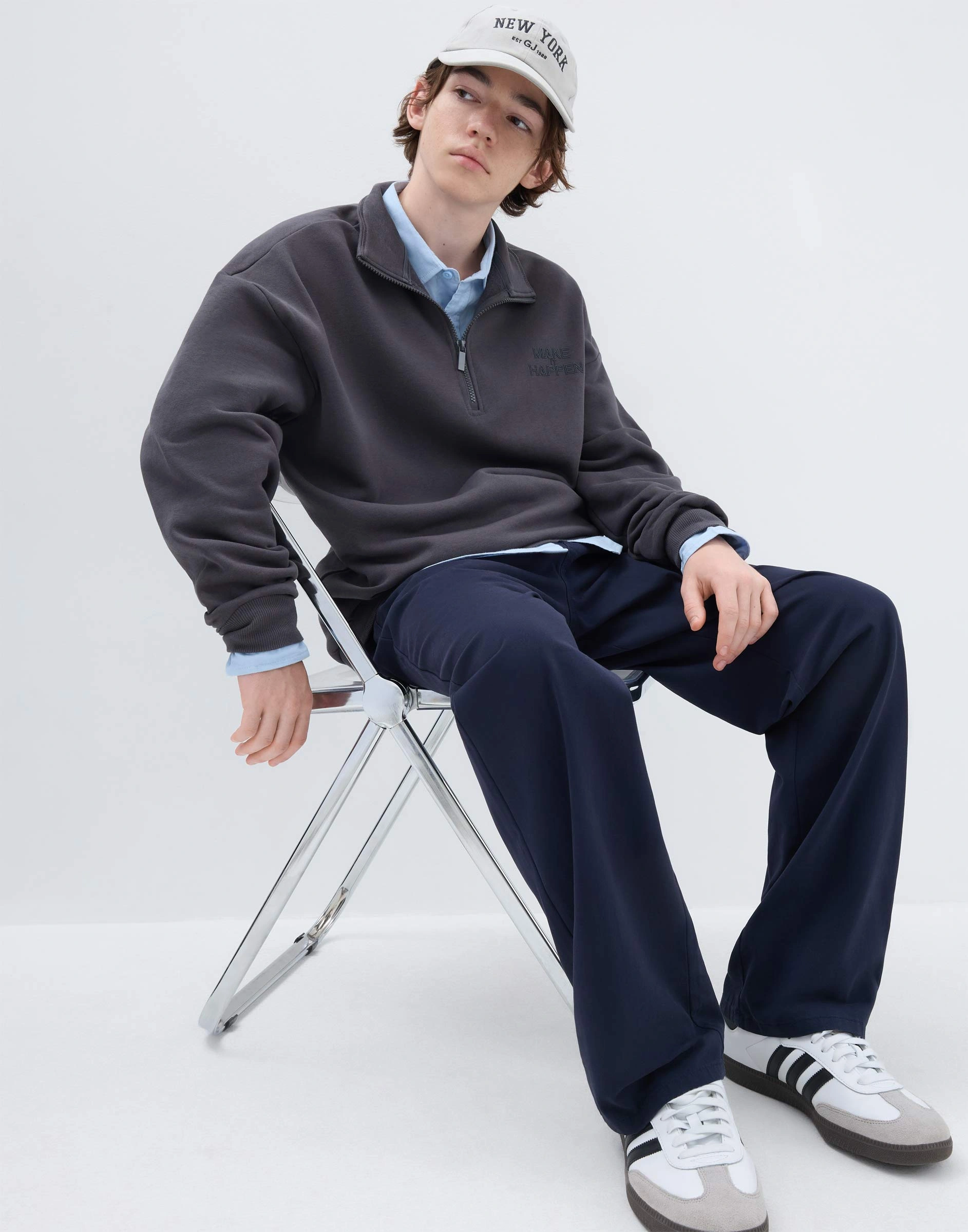 Тёмно-синие брюки Easy fit с защипами Bpt004056-1